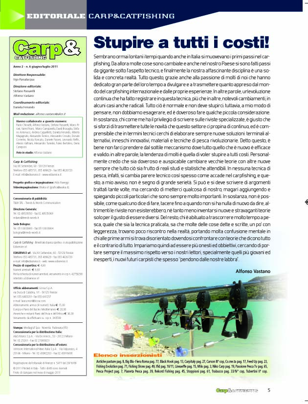 COPERTINA 6° NUMERO DI CARP & CATFISHING SOMMARIO 6° NUMERO DI CARP & CATFISHING EDITORIALE 6° NUMERO DI CARP & CATFISHING Si ringrazia Alfonso Vastano, Daniela Ferrando, Stefano Passarelli, Edilservice e tutto lo Staff di Carp&Catfishing per la collaborazione!