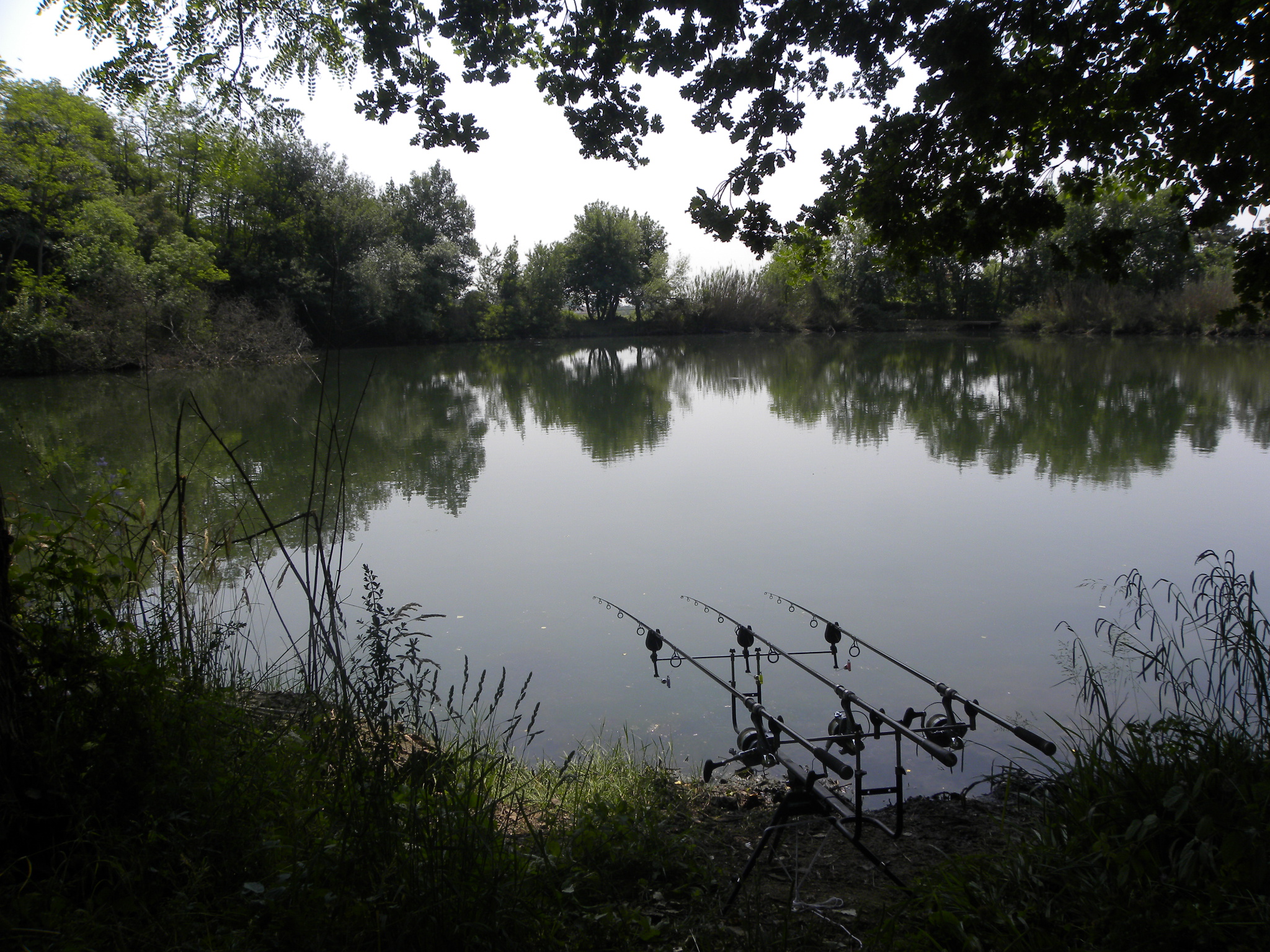 opto su tre punti che mi sembrano intriganti...una sulla mia ansa alla sx dove l acqua sarà sui 2/3 mt e dove vedo passare branchi e branchi di carpe..una davanti a una quercia caduta nel lago e una al canneto sulla parte opposta..