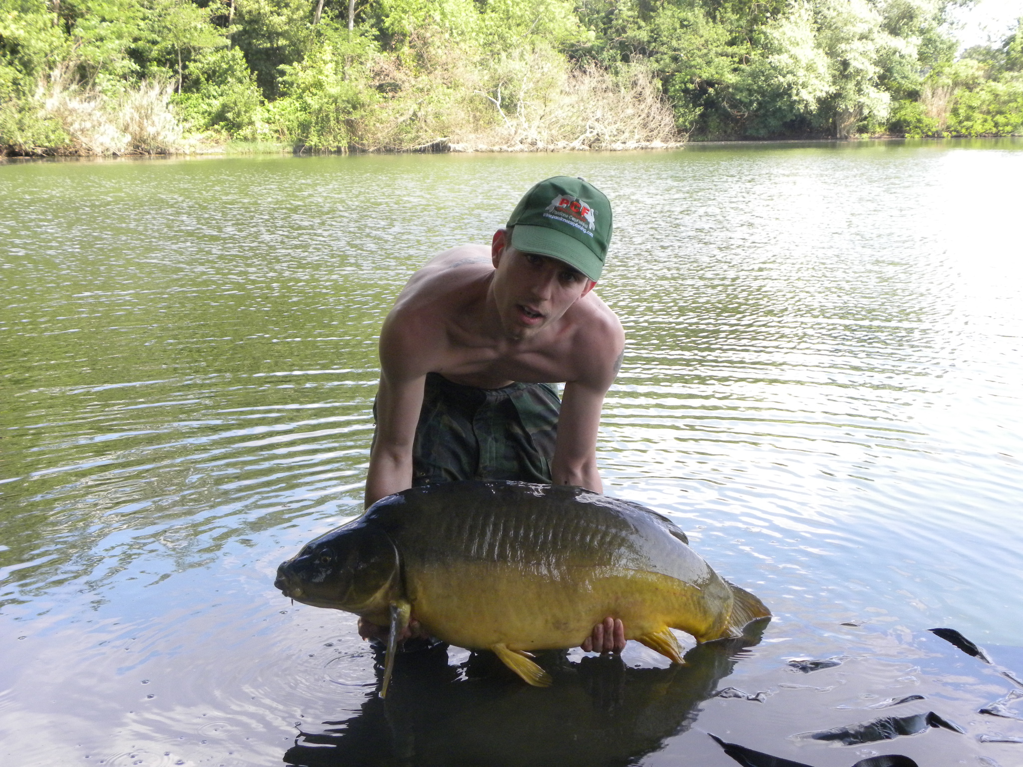 Eccomi qua,riprendo da dove è arrivato il mi socio:mentre eravamo intenti a recuperare la sua canna dalla legnaia sentiamo in lontananza il mio avvisatore che parte all'impazzata BIIPPPPPPPPPP!con uno scatto degno di Bolt in 2 secondi e mezzo faccio 50mt e riesco subito a ferrare......è la canna che ho messo alla mi a sx in mezzo ad un bel canneto con una boiles delle nostre self made aglio e menta :corn: (evvai hanno fatto strage)!è a circa 100mt da la sento,da delle testate da paura e la furbona piano piano cerca di infilarsi in una legnaia ma io forzandola un pochino riesco a fargli cambiare direzione e portarla a centro lago dopo circa una 10 min riesco ad avvicinarla un po,la vedo per la prima volta........C....O!che bestia!è una specchi gigantesca ancora non ci credo!e dopo circa altri 5min riesco a guadinarla,E'grandissimaaaaaaaaa!mi sa che ho riaggiornato il record un'altra volta(che culo)! :D faccio un bel po di foto e finalmente arriva il momento della pesatura, l'ago si ferma a................... 2......................1...............20kg :25: :corn: che bestia ragazzi!io un pesce cosi l'ho sempre visti sui giornali e basta ma questa volta è capitato a me.