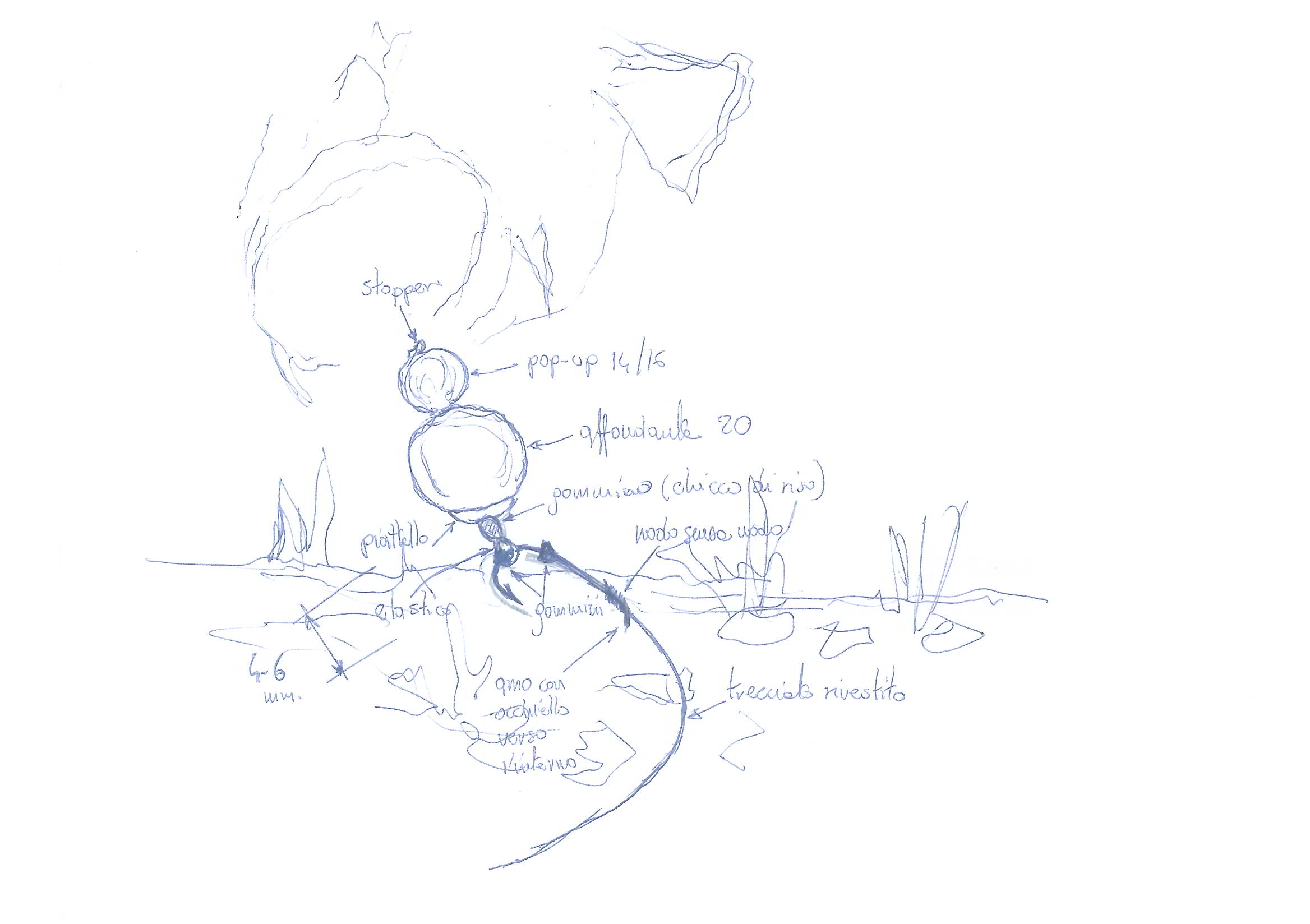 L'elatico ha un vantaggio se faccio un omino di neve (è l'innesco che avevo in mente, come si vede anche dal disegno): con il bucaboilie lo tiro dentro l'affondante, quando spunta dalla parte opposta ci infilo del filo di cotone (o interdentale per chi lo preferisce), che mi servirà per fissare la pop-up. L'elastico tendendosi fa stare la pop up ben aderente all'affondante.... bisogna solo avere l'accortezza di allargare leggermente il foto nell'affondante, basta un piccolo trapanino; altrimenti l'elastico ci scorre poco e si può rischiare di romperlo tirando col bucaboilie. Consiglio di preparare gli inneschi a casa.