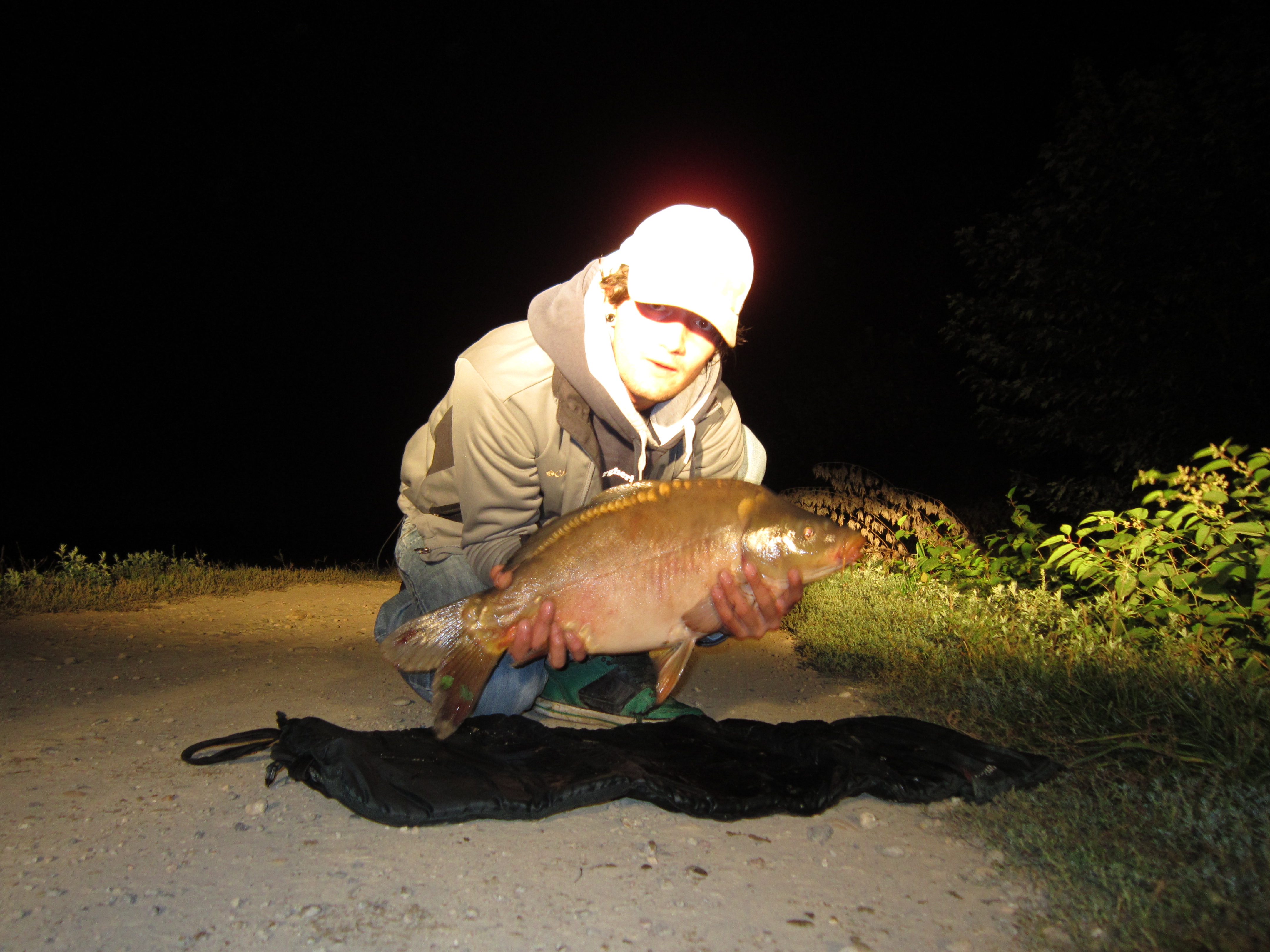 ahahhahaha ciao a tutti carpfisher!!!!stasera sono andato dalle 21 alle 23e30 per una breve sessione in un corso d'acqua che entra nel cervo zona quinto vercellese.Arrivo ed è gia buio,mi faccio largo tra i rovi con le forbicione da giardiniere e apro il mio varco(ragni dappertutto)e piazzo i picchetti,facili e veloci.Innesco su una canna il mais,la lancio e ci butto una manciata di mais sopra l'innesco;prendo la mia canna fortunata e ci innesco la mia maledetta boiles al baco