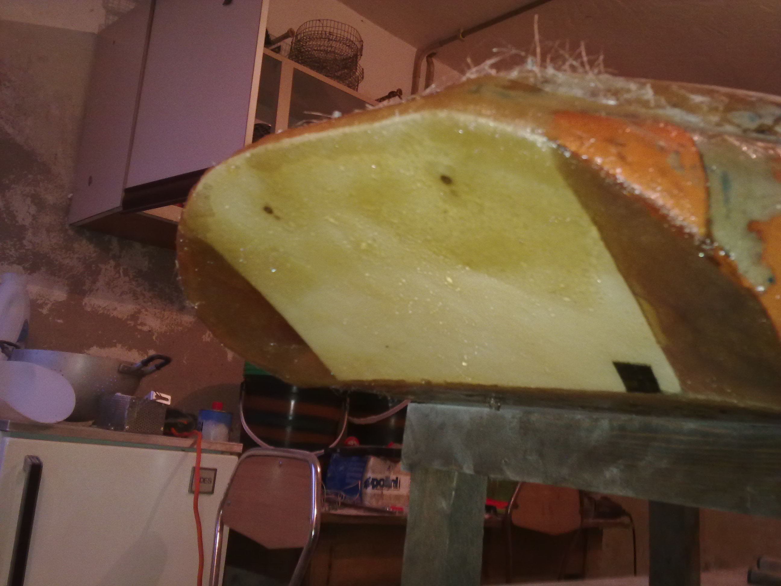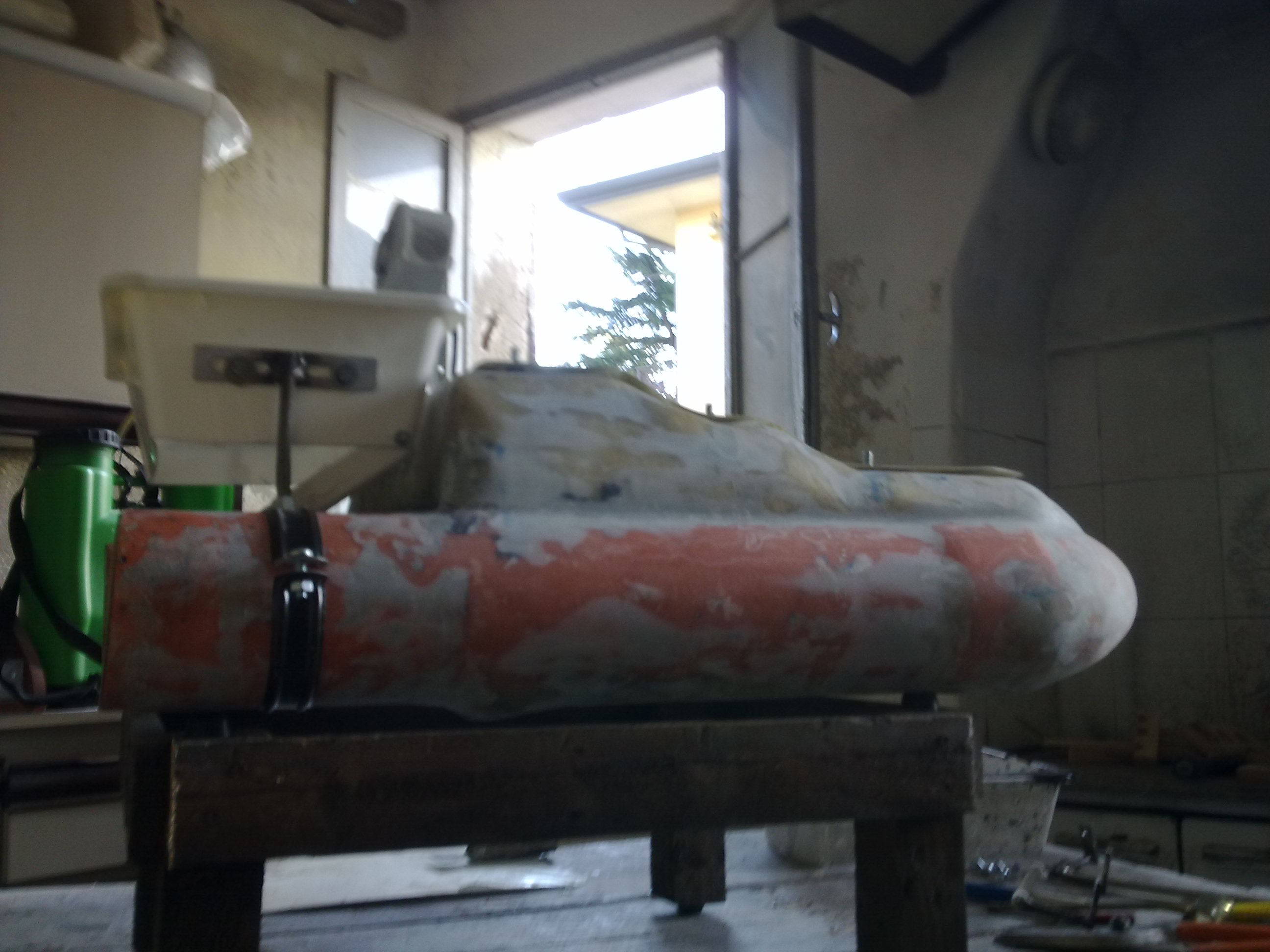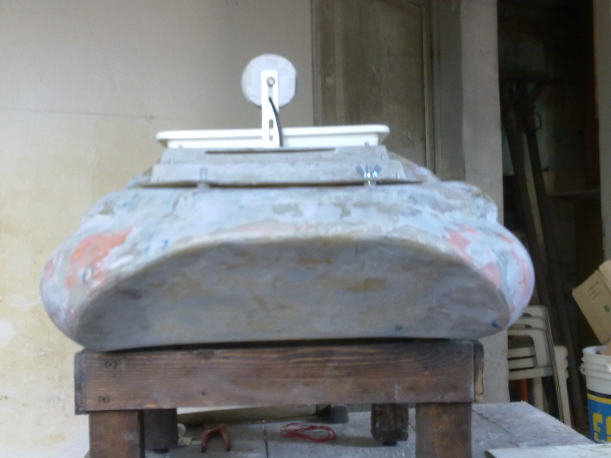 Per quanto riguarda la scocca ho usato dei tubi in pvc da 110 e tanta tanta vetroresina e lana di vetro presa sulle e-bay