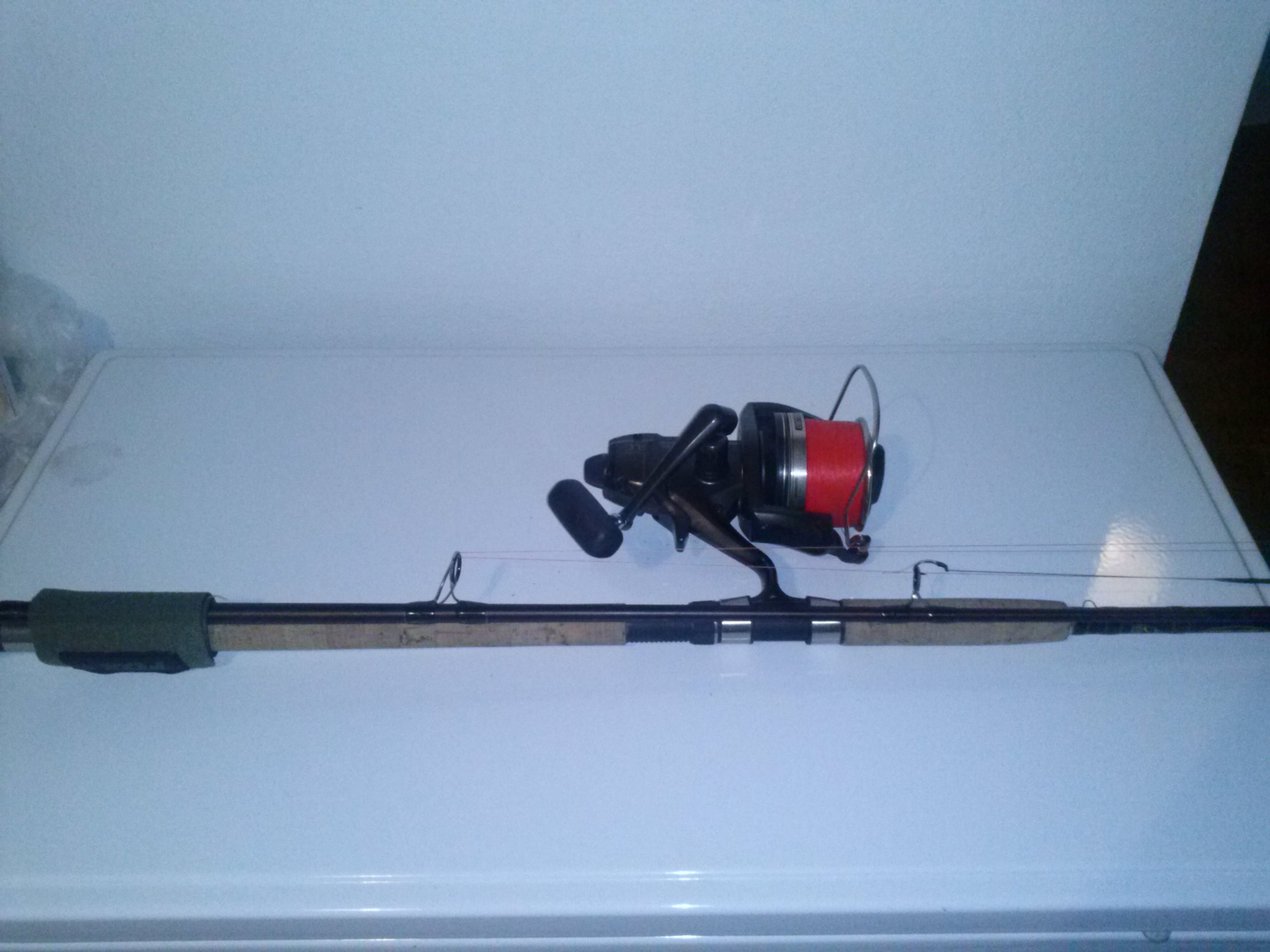 1 shimano beastmaster silurus spinning montata con shimano big baitrunner e spiderwire rosso 0,33