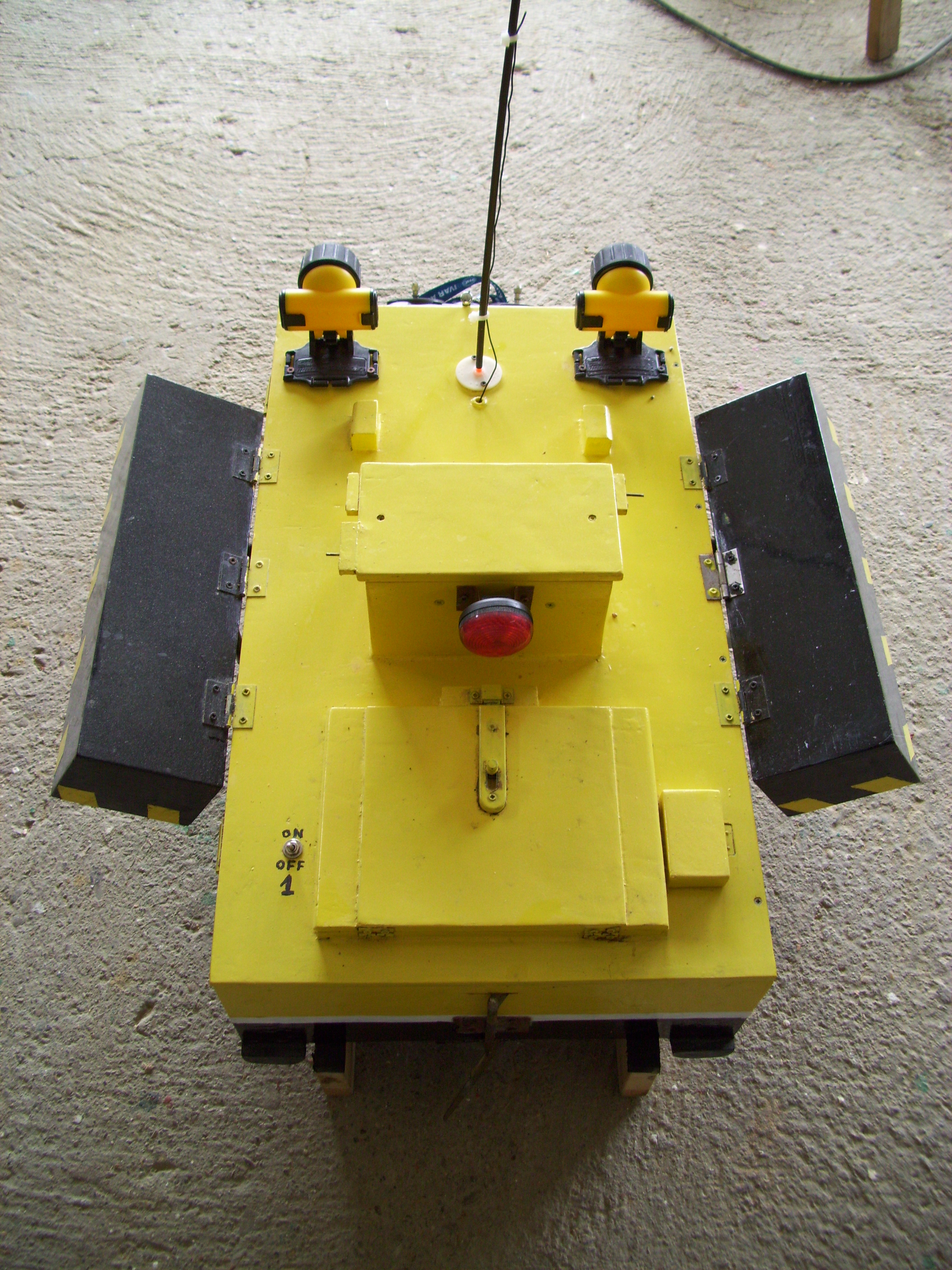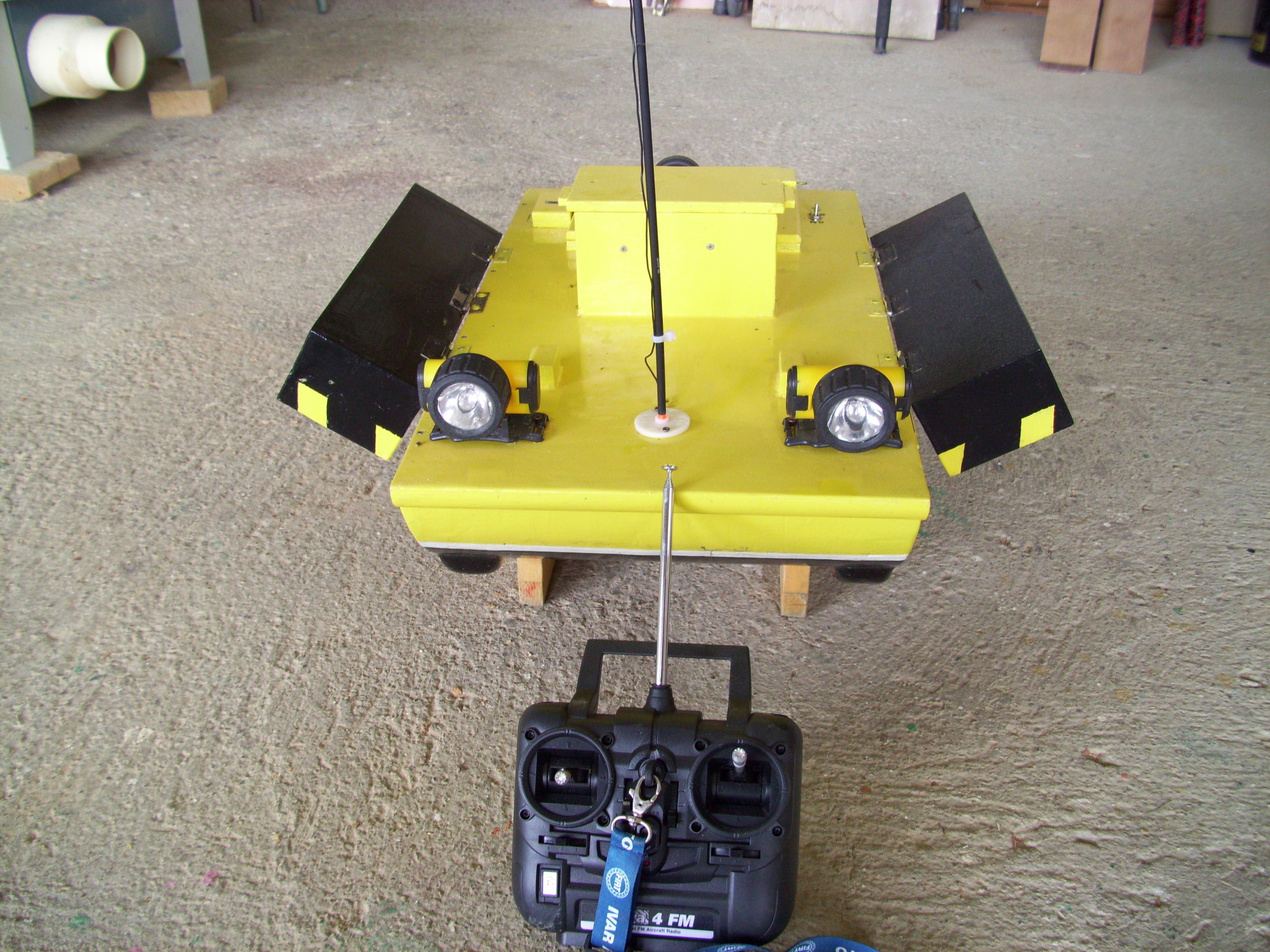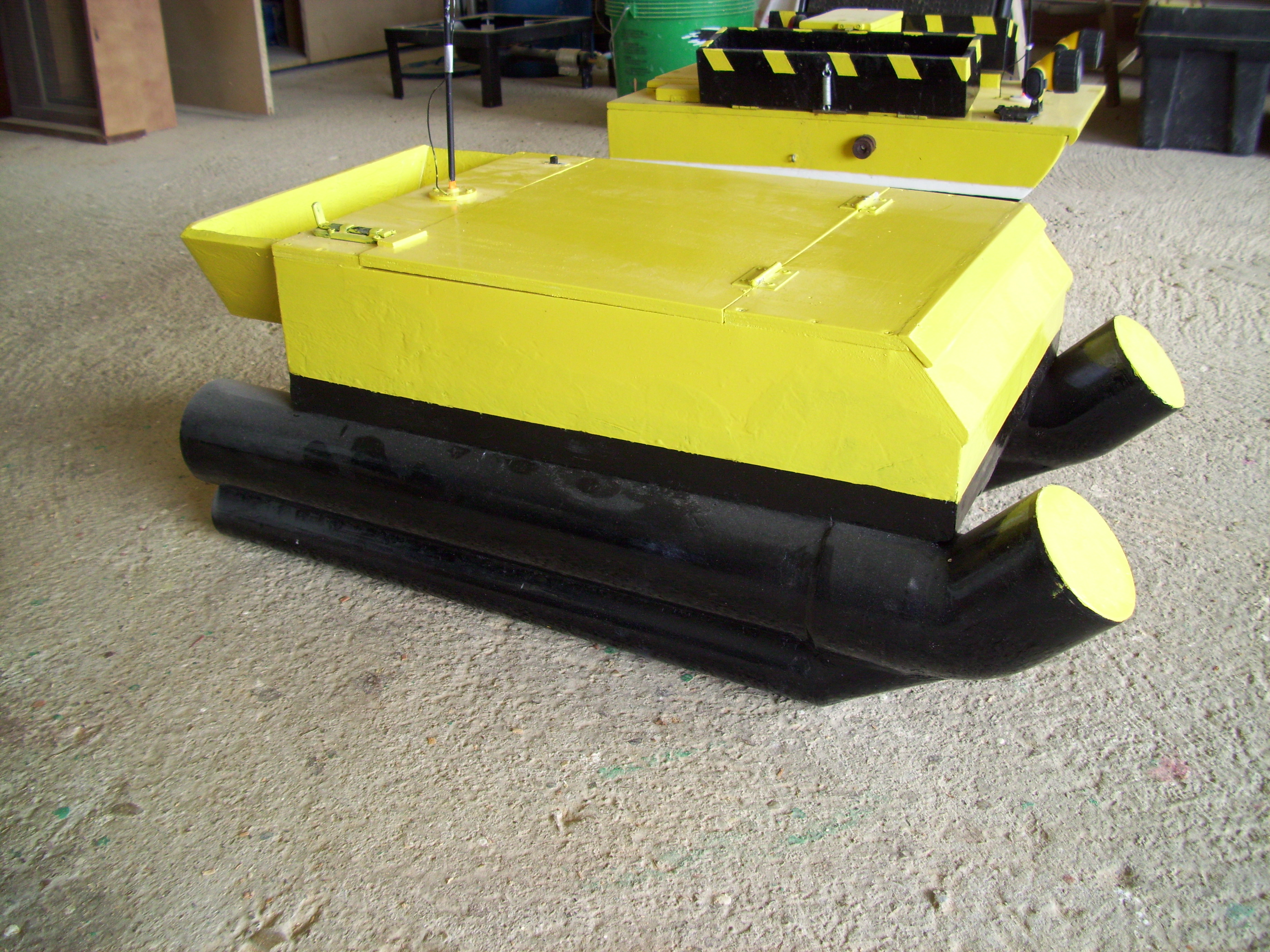 Il primo è un barchino con le vasche che si sganciano separatamente con una capacità di 1kg ogni vasca, ha un raggio d'azione di 1km e usufruisce di batterie da 6v 7,2A. é costruito interamente in legno e rivestito con 3 strati di vetroresina a stucco e verniciato con vernice a olio.