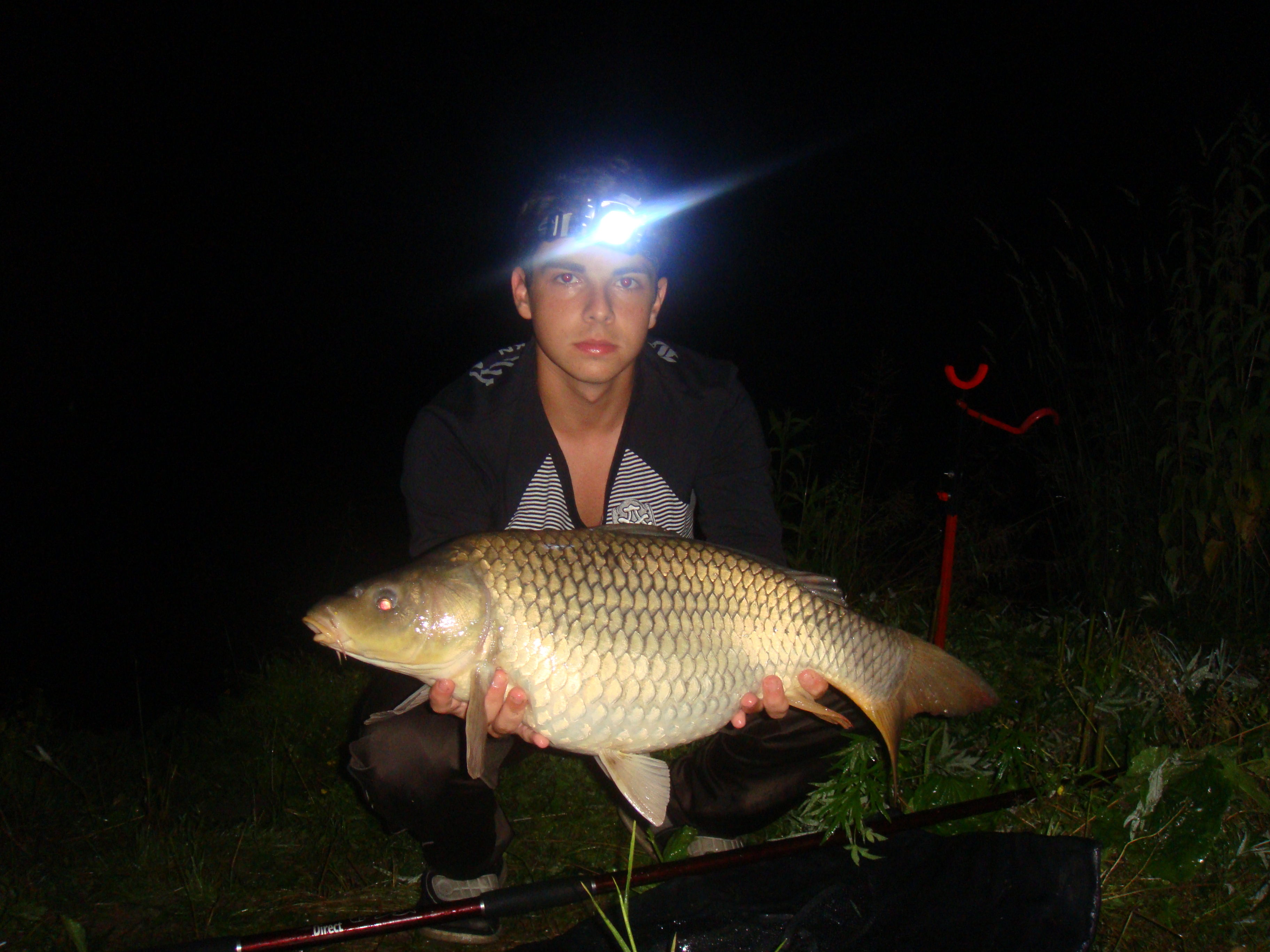 con una scatto repentino mentre gli altri 2 mi ridono dietro riesco a rialzarmi e dopo un non facile combattimento ecco la prima carpa della sessione! La gioia è tanta soprattutto perchè mi son ricordato che l'ho presa con le mie prime boiles fatte in casa