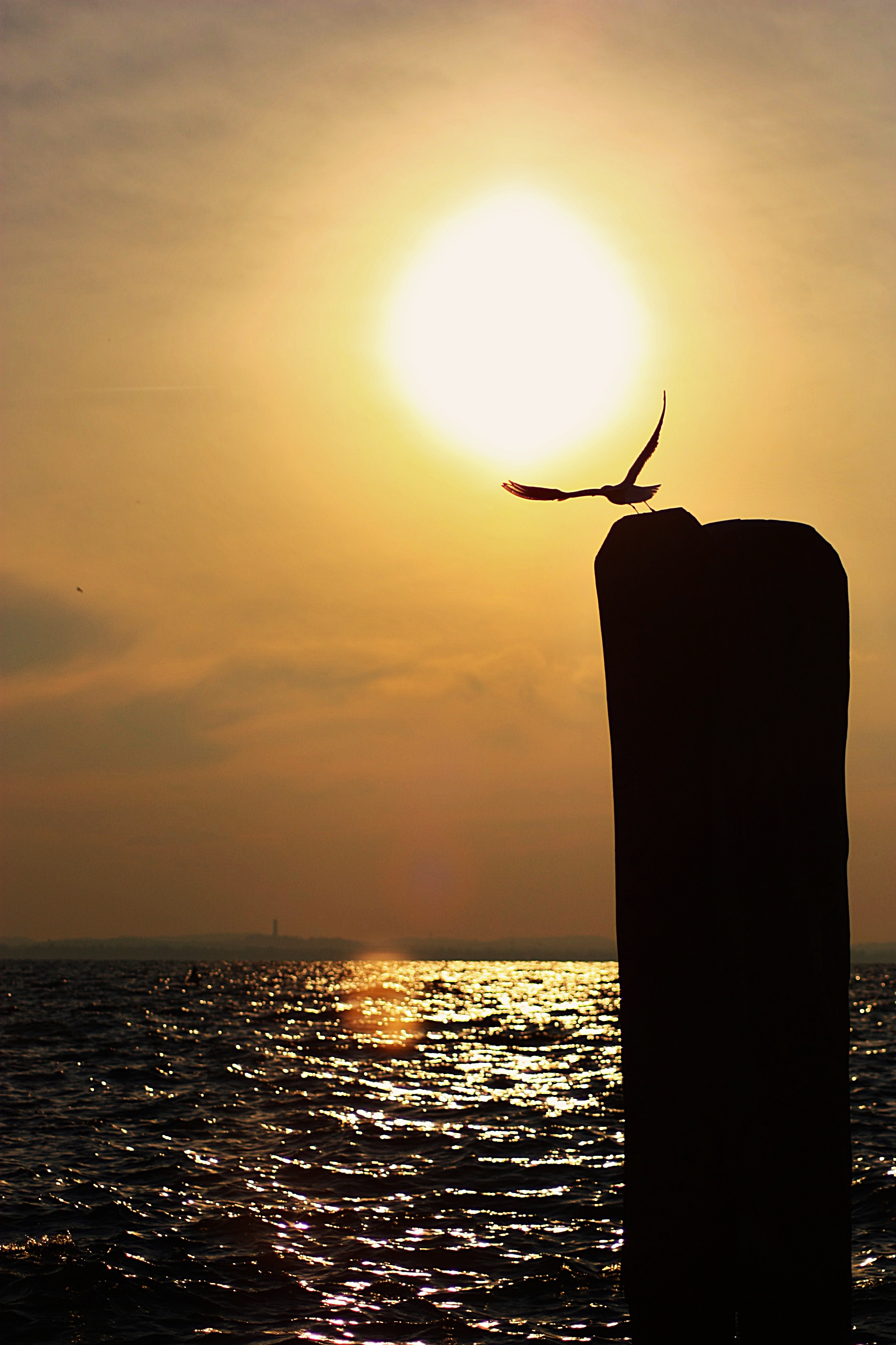 davvero coinvolgente.... il gabbiano sembra voler sorreggere il sole con le ali