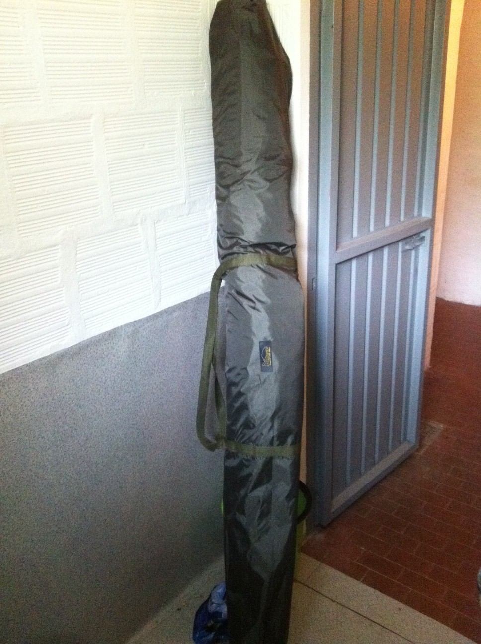 vendo ombrellone KKARP excellence broly usata una sola sessione Capacità: 2 persone Misure Chiusa: 183x15x15cm Peso: 8.9kg Dotazione: Telo struttura Telo fondo in Pvc super resistente Cuciture in 120G/SQM PE tutte termosaldate, Quattro pali estensori telescopici in alluminio. Parta di ingresso più due finestre oscurabili. Anellli di ancoraggio in alluminio. Picchetti per ancoraggio. Borsa per il trasporto. e scontrino di garanzia.