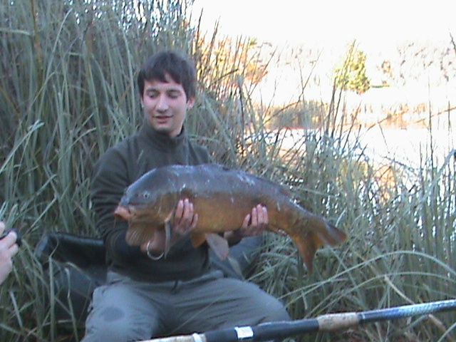 sono le 13 e tutto tace, un signore passa di li e si fanno due chiacchiere e si cerca di capire un pò di cose circa il posto, ma nulla da fare, l0anziano decide di continuare a spinning e intanto tira su una lenza di Ritchie durante i suoi lanci ... a questo punto, Giorgio figlio di Ritchie riposiziona tutto e dopo poco sentiamo il primo e fatidico bip, una saetta Giorgio ... ferra e sente il pesce in canna ... tutti increduli e contenti allo stesso tempo dopo pochi minuti porta a guadino un bel pesce, la bilancia si ferma sui 10kg ... nel bene o nel male un piccolo traguardo lo avevamo già raggiunto, la splendida specchi era caduta su una 18mm al miele tanto per la cronaca ...