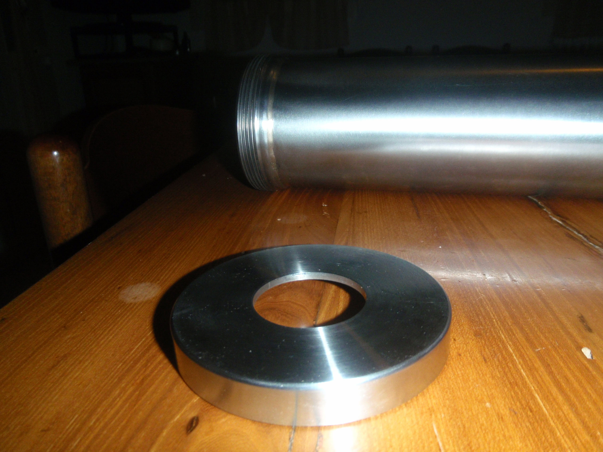 La ghiera filettata per il tappo è saldobrasata e tirata a lucido, ottima la scelta della saldobrasatura in quanto attacca perfettamente e, principalmente, non deforma il materiale evitando possibili inceppi del pistone durante la corsa.