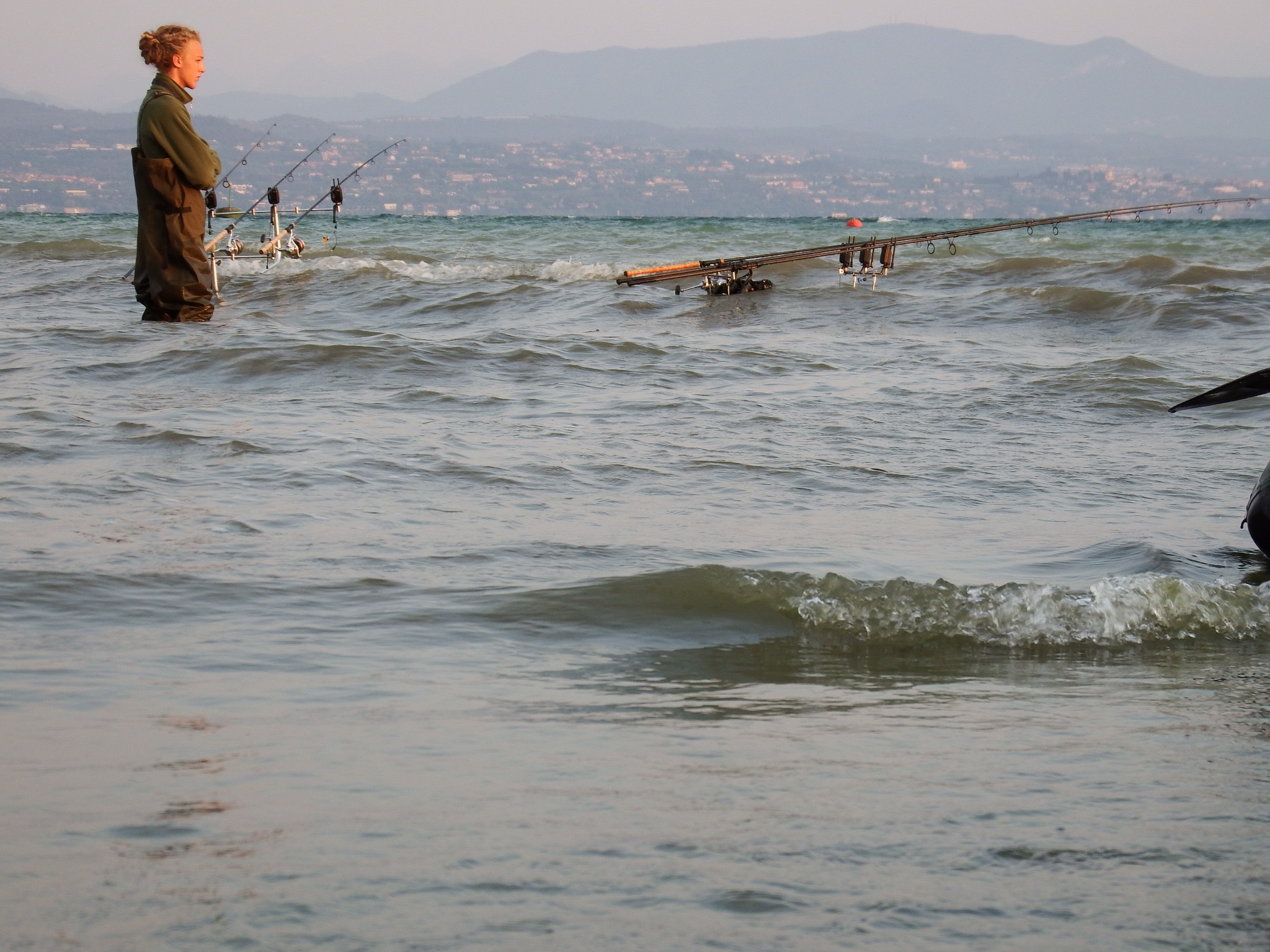 Il pomeriggio tra qualche pisolino e serie su Netflix passa veloce ma senza l'ombra di una carpa fino a quando la chiamata di mio papà mi dà speranza. Sarebbe venuto a prendermi dopocena alle 21. Contentissimo di poter sfruttare qualche ora di buio mi rimetto in branda con la speranza che la sera cali in fretta. Pian piano le ombre si facevano più lunghe, il sole sparisce dentro al lago e cala il buio. Mancava un'ora e avrei dovuto iniziare a smontare quando all'improvviso sento la frizione fare qualche scatto. Incredulo metto i waders e corro verso le canne, nel tragitto sento un altro bip, corro più forte, arrivo alle canne. Tutto tace, alzo lo sguardo verso il lago e l'avvisatore fa un altro bip. Tengo lo sguardo fisso sulla canna...biiiippppp partenza potentissima!