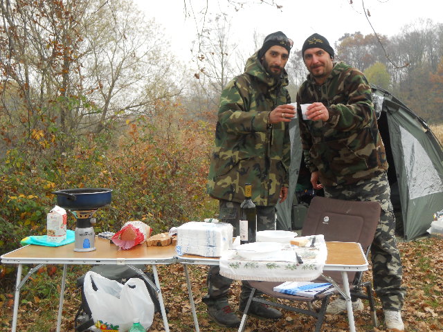inizia il rito del pranzo, ravioli al sugo, salamini di cinghiale, formaggio di capra ciociaro 100%, una buona bottiglia di rosso, grappetta che credevo all’inizio aver acquistato come genepy (fa niente, beviamo anche il gasolio noi carpisti no!?)si inizia ad accusare la stanchezza, ma prima che arrivi, vista la poca attività sulle nostre canne, decido di andare a trovare i santoni che c’erano sulla sponda opposta…. Parcheggio la macchina, porto con me la grappetta e formaggio da condividere con il penela e blangio e max un minuto dal mio arrivo, parte la canna di penela, ma purtroppo finisce in mezzo a una legnaia, e li rimane, tutto da rifare, ma si rifara’ con gli interessi….. finiamo la bottiglia di grappa , facciamo piacevolmente 4 chiacchiere e inizia a farsi sentire la stanchezza e la grappa…. Via verso la branda…. i nostri pod sono imbalsamati, l’ unica soddisfazione che poteva arrivare in quell’ attesa era un gol del Frosinone, ma niente si è perso 3 a 0 con il Padova. Prima che facesse notte, si reinnesca , cambio la doppia bilanciata e innesco il mio talismano , tutti frutti nutrabaits da 20 affondante, da li le mie aspettative iniziano a salire, non potevano tradirmi. Un paio d’ ore di morfeo e si riprepara la cena, sempre buona e abbondante e un po m’ briachelli si va a letto. Neanche un pesce , ne io ne il beppe, che ormai era deluso dai nostri risultati… ma, partita a briscola, scopa e ci rendevamo conto di non essere più in grado di reggere le carte in mano e via dentro il sacco a pelo.