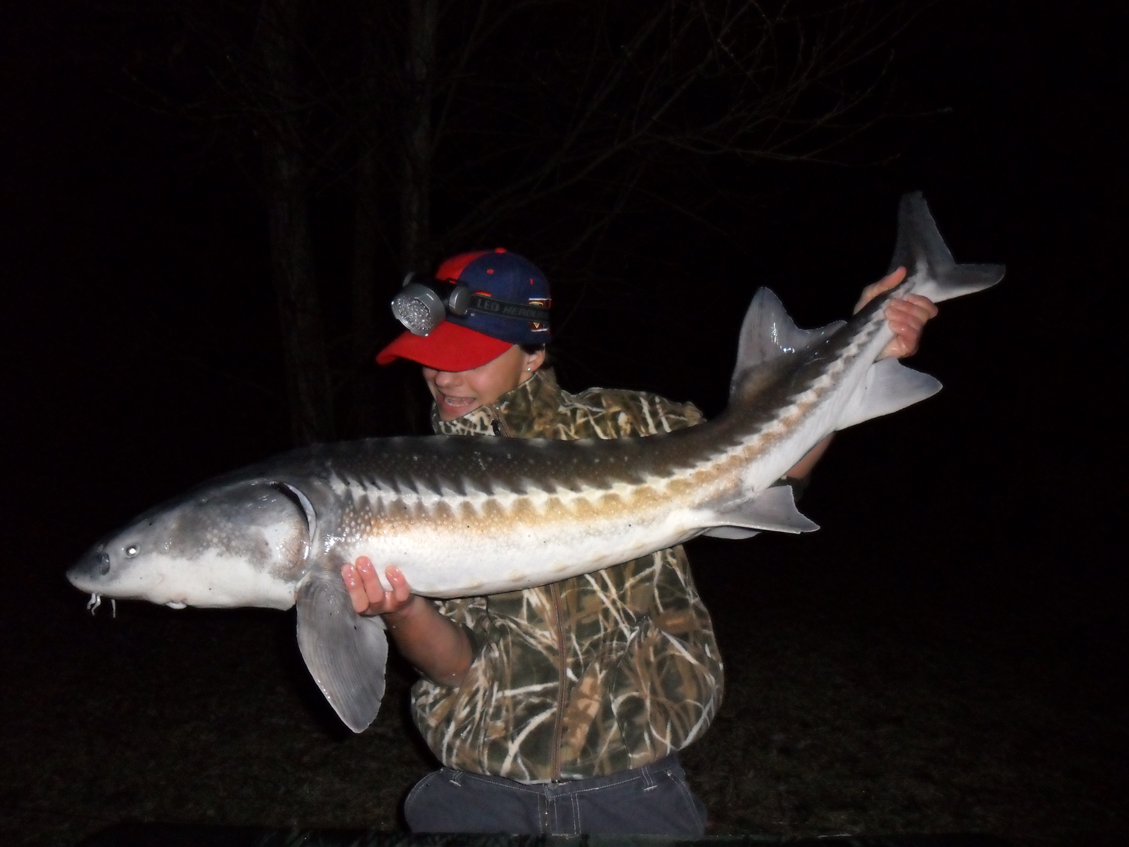si alza per tirare su la canna ma prontamente lo fermo dicendogli di lasciarla stare perché se fosse partita sarebbe stato un bel pesce. Diego convito si risiede. Dopo circa venti minuti quella canna parte molto violentemente. Già dalla prime fasi del combattimento si capisce che il pesce che c'è dall'altra parte della lenza è di dimensioni ben più grandi di quelli catturati da me prima, infatti dopo circa 10 minuti di combattimento arriva a guadino una bellissima specchi che alla pesatura segna 11,5 kg. Dopo aver catturato uno storione ed una bella specchi su gli 8 kg propongo a Diego di andare a dormire siccome il freddo iniziava a farsi sentire
