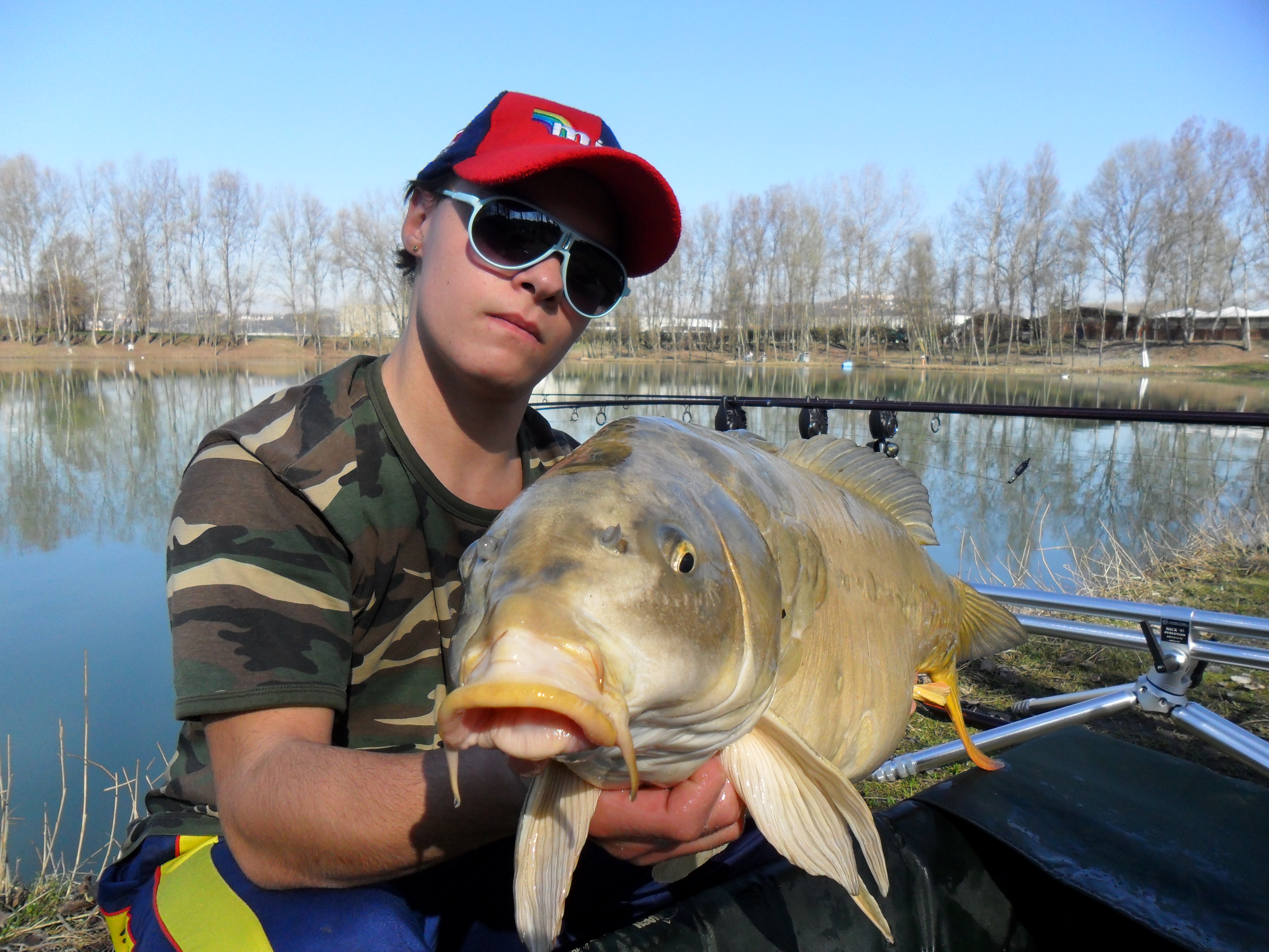 . Dopo qualche parola inizio a montare il campo mentre Diego si divertiva a pescare gli storioni con il formaggio. Dopo aver piazzato tenda e canne monto la mia solita cannetta all' inglese innescata con la fontina