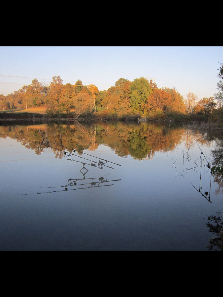 solo io e il Berti autunnale...che bello!arrivo e preparo tutto con minuzia come non facevo da tempo,metto i waders e incomincio a "navigare" su e giu per la riva,per scrutare ostacoli(per la notte) e cercare qualche spazio ripulito dalle baffone.trovo in un metro d'acqua un bello spazietto tutto pulito,a 3 metri dal cimino della canna e 3 da riva,pietroso e ci calo a mano l'innesco(d-rig) con una spugnetta gialla a forma di Tiger e un chicco di mais tutto pop up staccato di 5cm.e la canna sul picchetto è ok!monto il pod e lo metto in mezzo metro d'acqua perche davanti a me è pieno di ostacoli sommersi e decido di non usare i tendifilo!una canna la metto in 8 metri al centro di un'ansa dove raramente ci pescano e l'altra su uno scalino di 5 metri.boiles affondanti da 16mm self montate una su blowback e l'altra non so come si chiama(amo con anellino e i due stopper) con line aligner.stringer di pva con 4 boiles e due pellets e 20 boiles con il cobra è la pasturazione.prima partenza,corro in acqua al pod,ferro e gestisco bene il pesce che sembra anche "pesante" dalle lente ma poderose tirate che dava e appena arriva vicino gli ostacoli e le pietre riesce a slamarsi