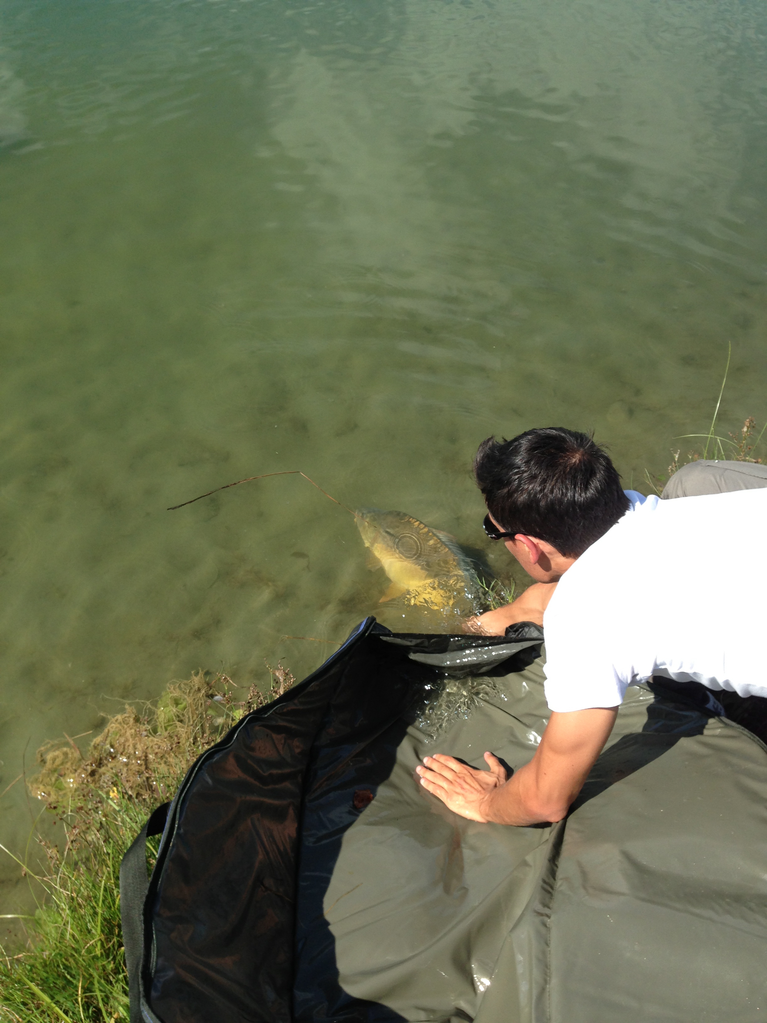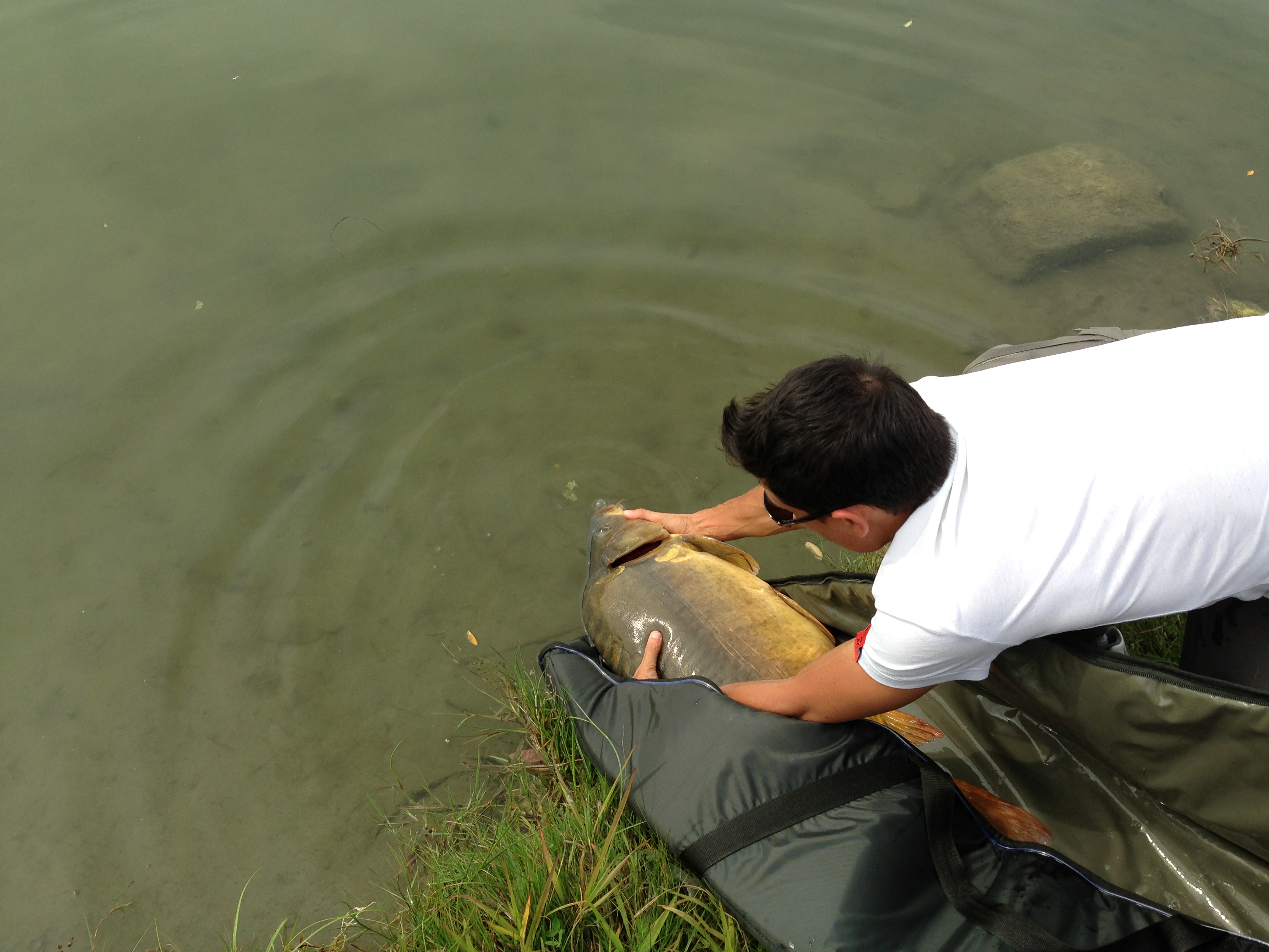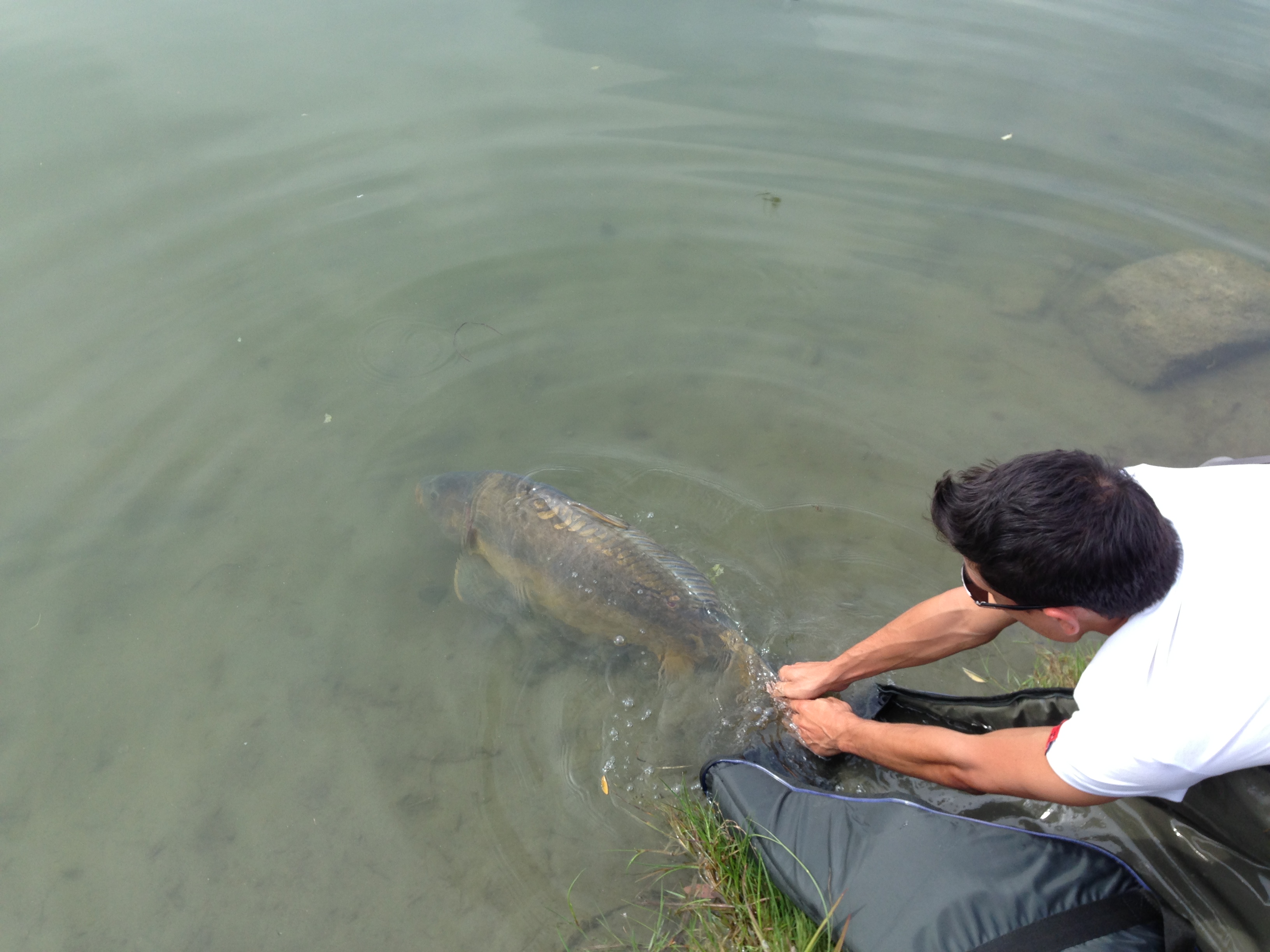 Ci abbracciamo e siamo felici...non smetto di fotografare la carpa, ma è tempo di liberarla...con non poca fatica metto il materassino a pelo d'acqua e la ossigeno...poi ci salutiamo con una vigorosa pinnata sua che mi infradicia per bene! :D