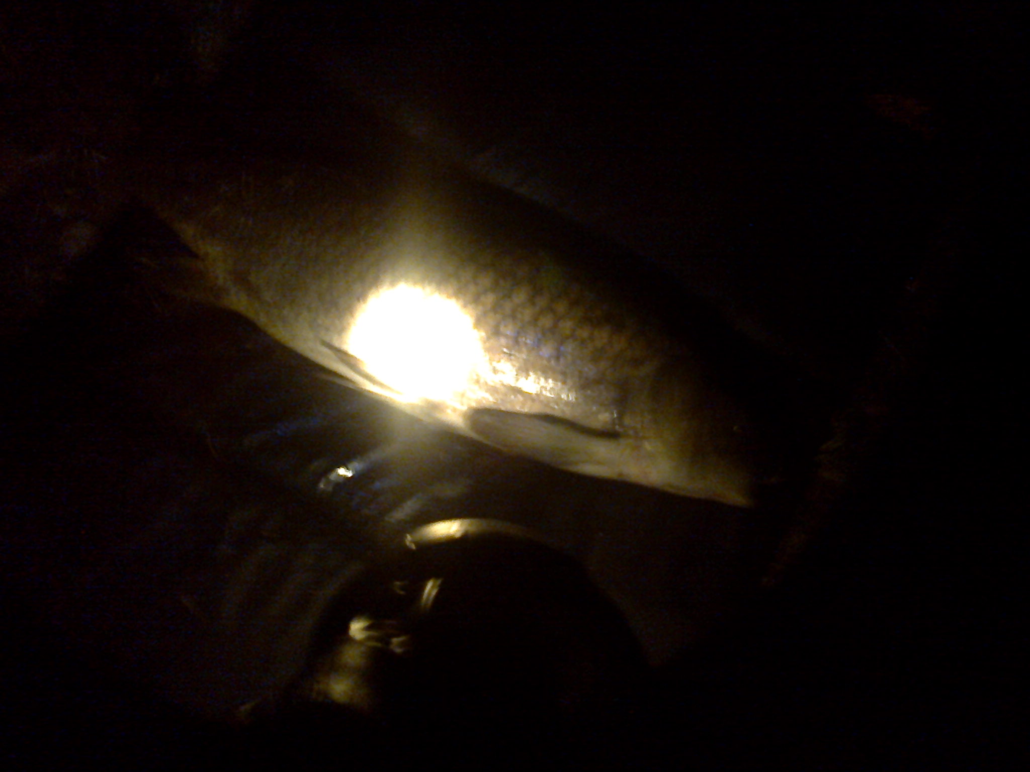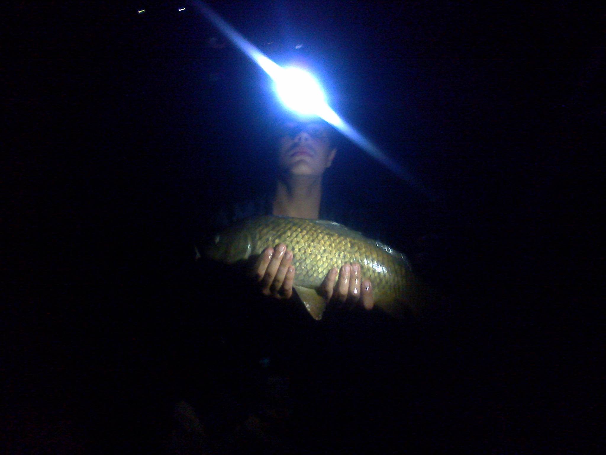 alle 2:30 di notte un'altra partenza mi va saltare giù dall' letto corro verso le canne ferro e sento stavola una carpa molto lenta e forte che dopo un bel pò si stanca e si lascia guadinare (purtroppo nel cuore della notte tutti dormivano quindi ho dovuto fare tutto da solo e mi scuso se la foto non è il massimo):