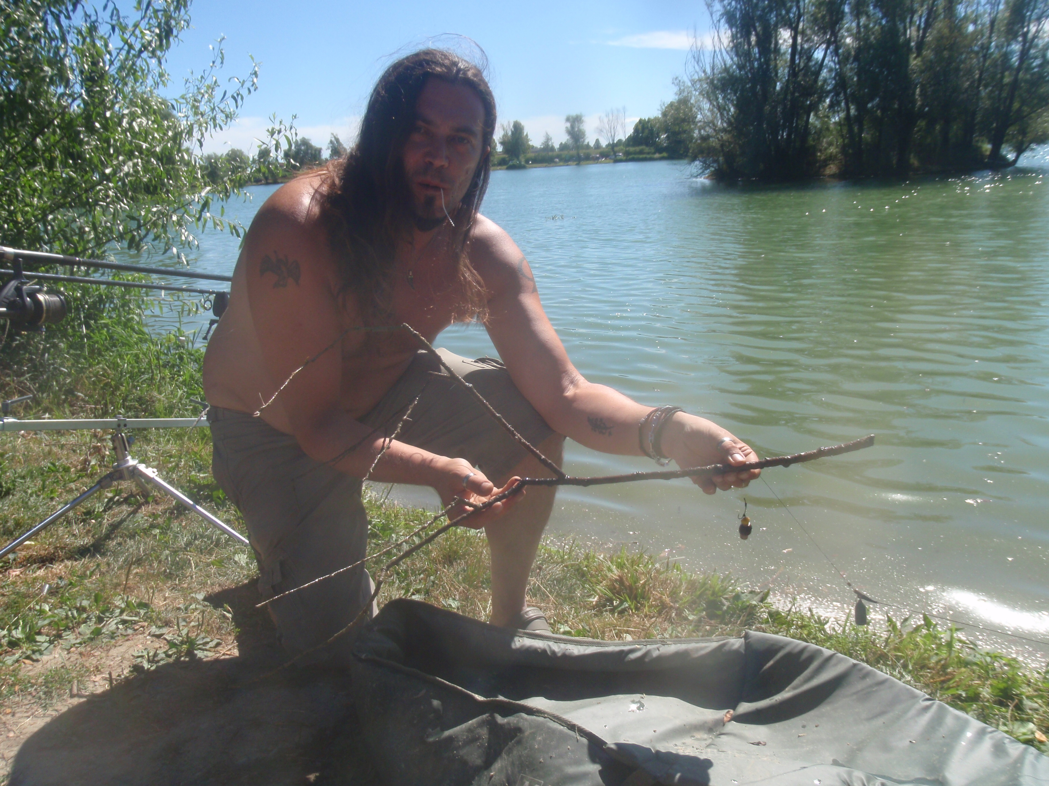 Poco dopo dopo anche Angelo sente una abboccata e recupera un... ramo secco. Non era eccessivamente felice del risultato.