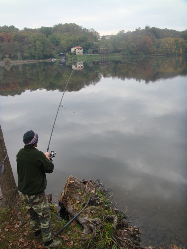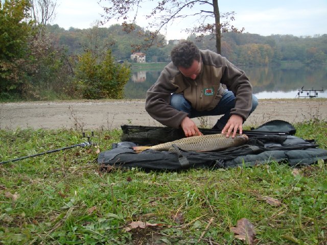A seguito anche blangio si mette in pesca ed il primo pesce nn si fa aspettare, buon segno per noi ... blangio porta a guadino la prima carpa ...