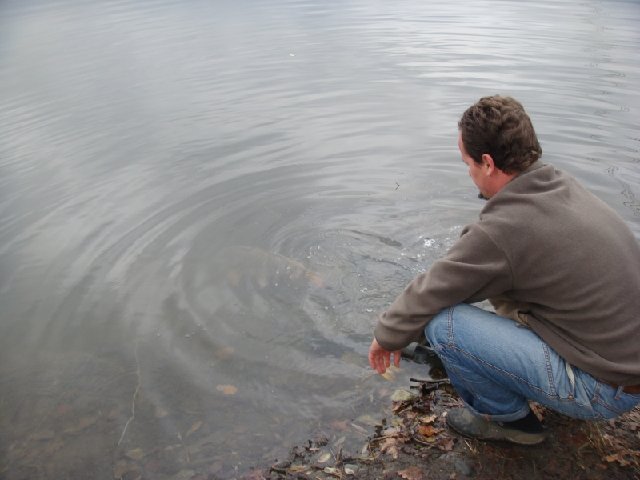 il pesce in canna, speravo solo nn andasse sotto la mia destra, dove avevo visto alcuni trinchi piantati in acqua,