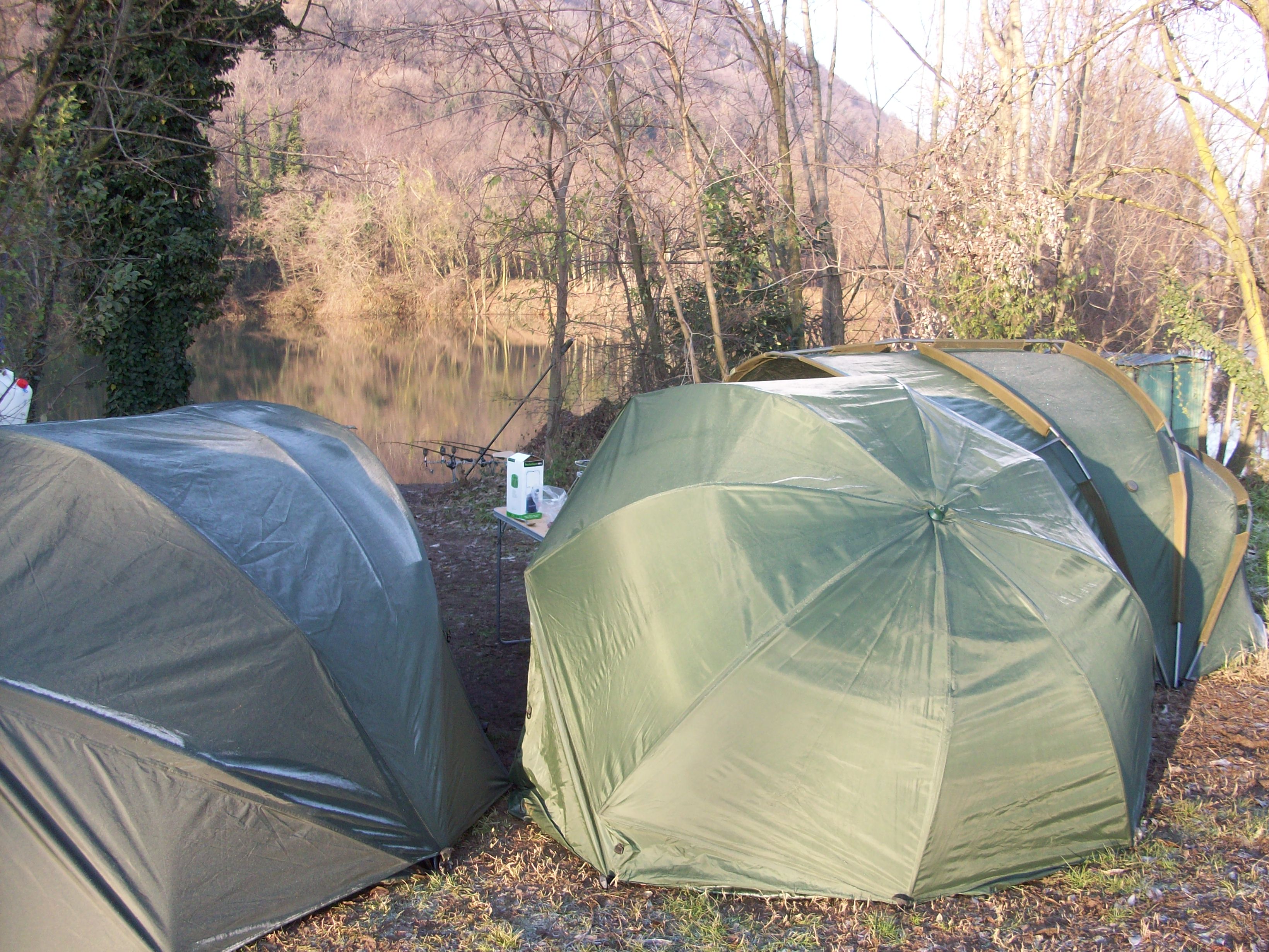 L’inverno è già arrivato: da due settimane solo acqua e spruzzate di neve, 4-5 gradi di giorno e poco sotto lo zero di notte. Le carpe forse già dormono ma abbiamo tanta voglia, e Nicola ha tenda e sacco a pelo da collaudare… allora eccoci qui, al nostro amatissimo laghetto. Tre spolveratine di boilies la settimana prima (ogni 2 giorni un mezzo chilo, una manciatina un po’ rotte un po’ intere in ogni spot)… misuriamo la temperatura dell’acqua, è a 6 gradi, forse siamo già sotto il limite.
