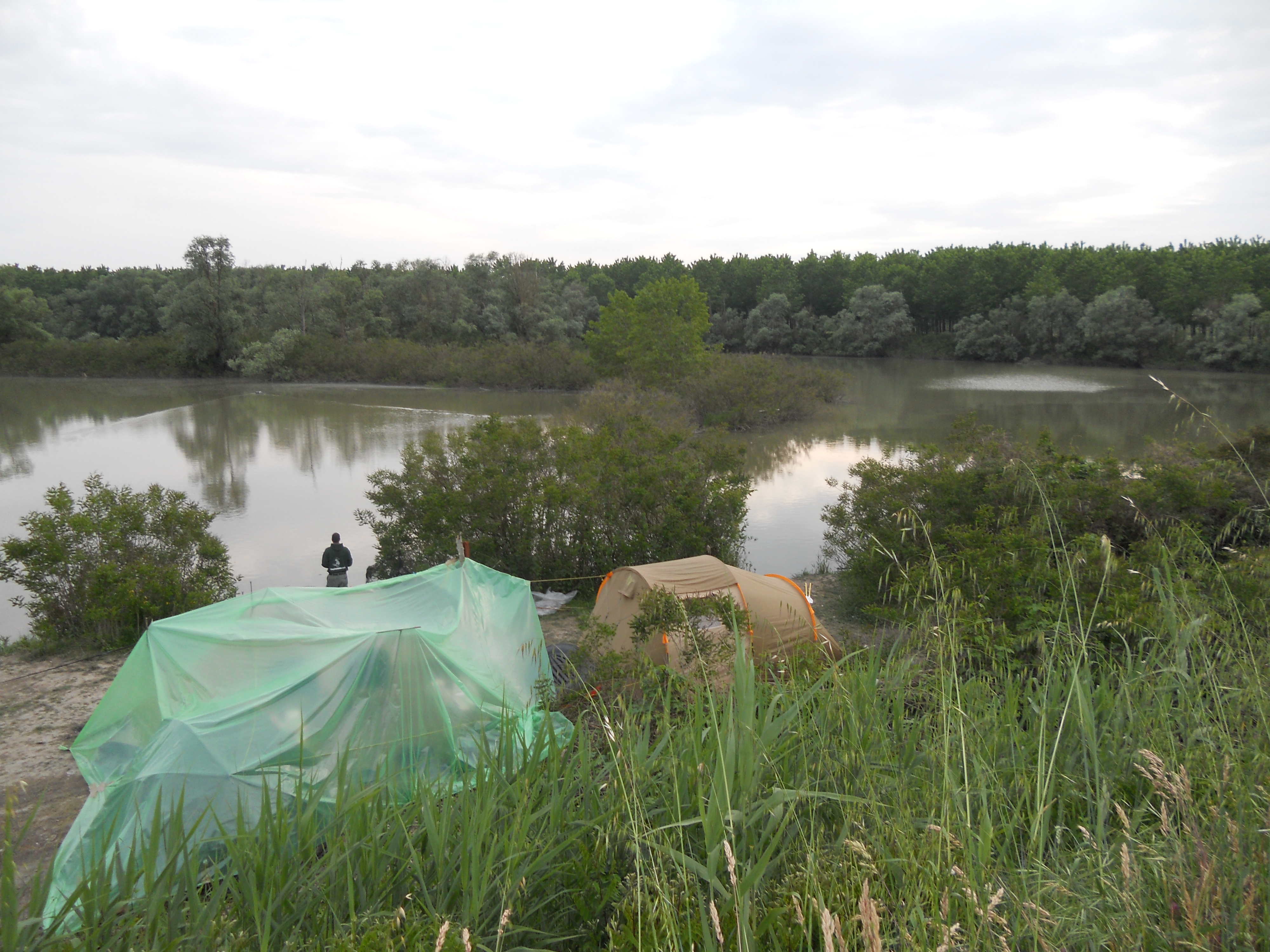 ciao a tutti . il week del primo maggio io e i miei due soci abbiamo deciso di fare una sessione nel po di goro , ormai una tradizione in qusto periodo visto che è già il terzo anno consecutivo che non ci facciamo perdere questo appuntamento. la sessione è stata abbastanza positiva perchè abbiamo avuto molte partenze ma aime non proprio tutte sono arrivate a guadino. causa fondale più sporgo degli anni passati e legnaie a go go, ma non dimentichiamo anche le odiate slamate sempre in agguato. la big non è arrivata come le due fortunate sessioni precedenti, ma sono uscite due splendide carpe tra gli 8 e 9 kg di cui ne siamo orgogliosi. ciao ora vi posto qualche foto.ps: la pioggia ci ha fatto visita ma le puntate di bear grills sono servite.