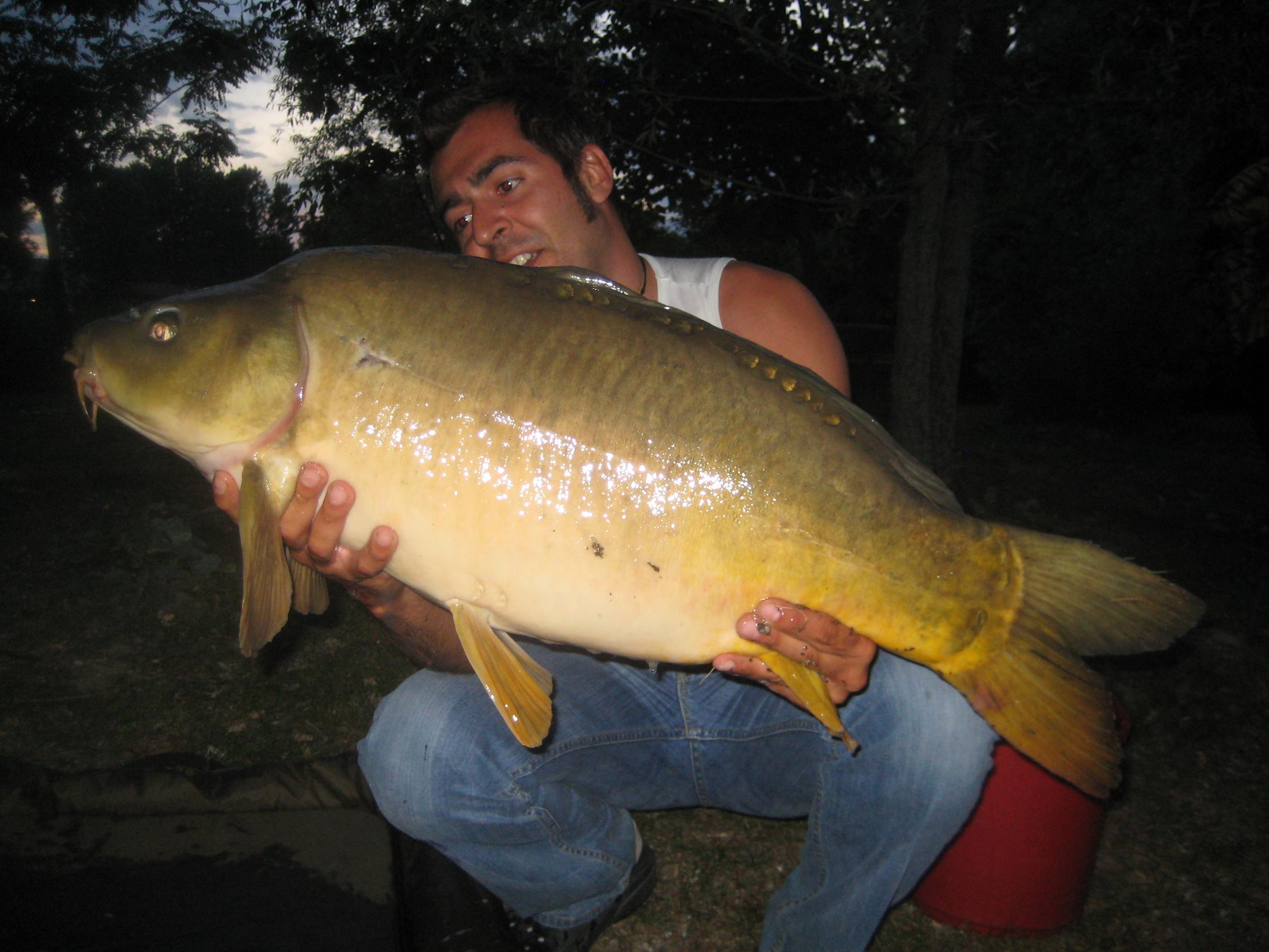 alle 9.15 (mentre mi sto cambiando in tenda) parte la canna centrale con la fragolona e questa si che è bella, dopo 15 minuti di tira e molla riesco a vederla e si che è bella...fa ancora 2/3 fughe sotto riva ma la guadino...sono 13 kg di specchi!!!