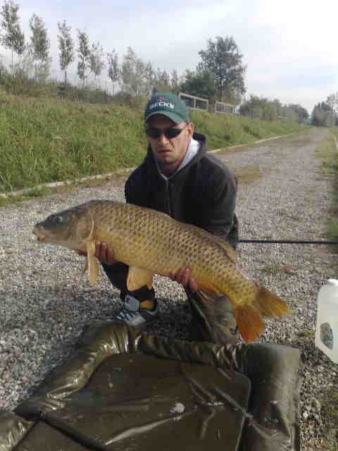 per me è iniziato tutto il giovedi mattina, alle 08:50 sono arrivato al lago e ho fatto subito l'incontro con il freddo pungente ma poco importa sapendo i bei giorni che avrei passato. Montato tutto l'ambaradan faccio un po di plumbing pasturo con qualche kilo di granaglie preparate con tanta cura e amore e verso le 11 sono in pesca, un paio di ore e arrivano le prime partenze un paio di regine sui 7/8 kg e una specchi di 3 incazza.. da paura. Più tardi nel pomeriggio inoltrato una canna inizia a bibettare mi avvicino di corsa, immobile come un segugio al primo movimento prendo la canna e ferro sento subito che è qualcosa di grosso ma non enorme fino a quando portato a vista d'occhio vedo un amur che ai miei occhi sembrava gigante, mi aspetto subito delle grandi sfuriate ma non so il perche entra in guadino senza fare troppo il matto, porto sul materassino e dopo le dovute cure l'ago della bilancia segna 14kg. Da li fino a venerdi catture ogni due ore con una bella regina di 9kg. Sono le 14 di venerdi pomeriggio, mi faccio pranzo e all'ultima forchettata di pasta parte una canna all'infuriata, volo al pod, ferro e un peso enorme mi porta a passeggio per il lago quando finalmente riesco a portarla in zona guadinatura vedo arrivare una specchi enorme con super gobbone, incredulo guadino e porto sull'materassino subito la medico avendo notato alqune ferite qua e la (non causate da me), arriva il momento della pesatura e l'ago della bilancia si ferma a 15kg lo pesata e ripesata con e senza tara e erano sempre 15kg. Piu tardi arriva Ska, che ringrazio tanto di tutti i consigli che mi ha dato della grande compagnia e delle squisitissime pietanze che ha preparato. Più tardi ancora ormai notte inoltrata sono arrivati broccoli e mr.madness, ringrazio tantissimo anche voi siete dei grandi avete fatto un sacco di kilometri per farci una pescata tutti assieme,