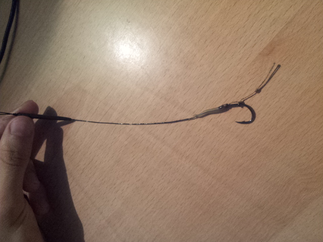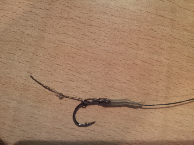 Ciao a tutti ! Ieri ho costruito questo terminale, provando ad unire un blow out con un line aligne, il test del palmo è ottimo su entrambi i lati dell'amo ma vorrei dei consigli a riguardo. Probabilmente l'amo è troppo corto ma potrebbe lo stesso funzionare? Lo vorrei usare sia affondante che pop up con l'aggiunta di un piombino intercambiabile. Che ne pensate? ! Aspetto notizie !!!!