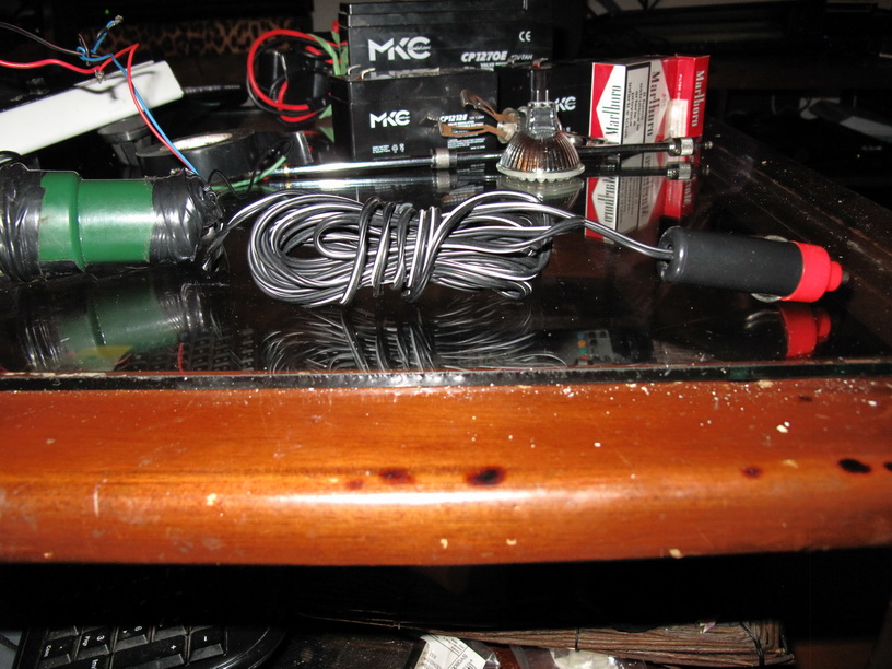altra soluzione più semplice, che utlizzo per illuminare il campo davanti alla tenda o dove io e cimice abbiamo bisogno di luce, tipo barbeque hahahaha, (quindi è sempre accesa), con lo stesso tipo di lampada e batterie, la copertura dell'area dipende da quanto in alto la fissate, a 2 metri d'altezza copre circa un'area di 5 X 5 metri