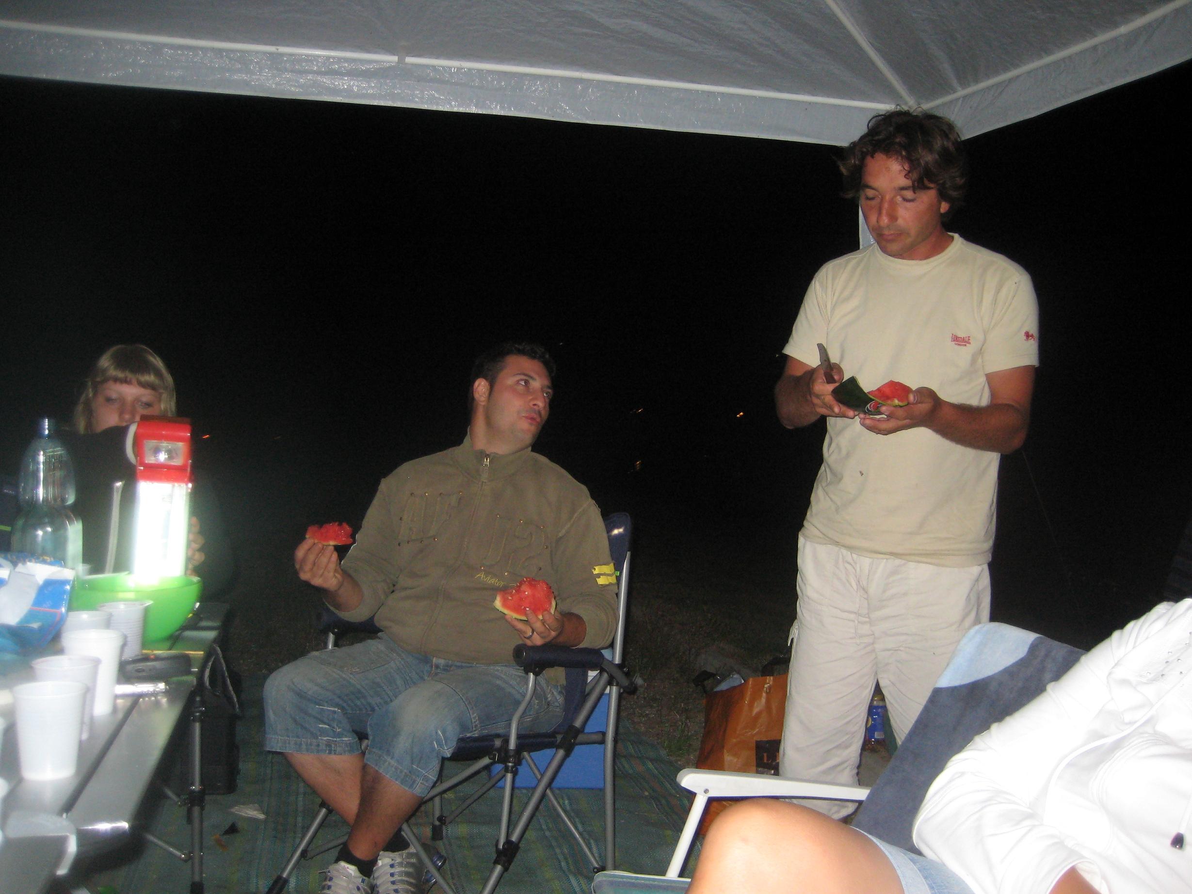 Salvatore e Ale. Ale ha rubato l'anguria a Salvatore che lo vuole accoltellare ma Ale chiede pietà heheheheh