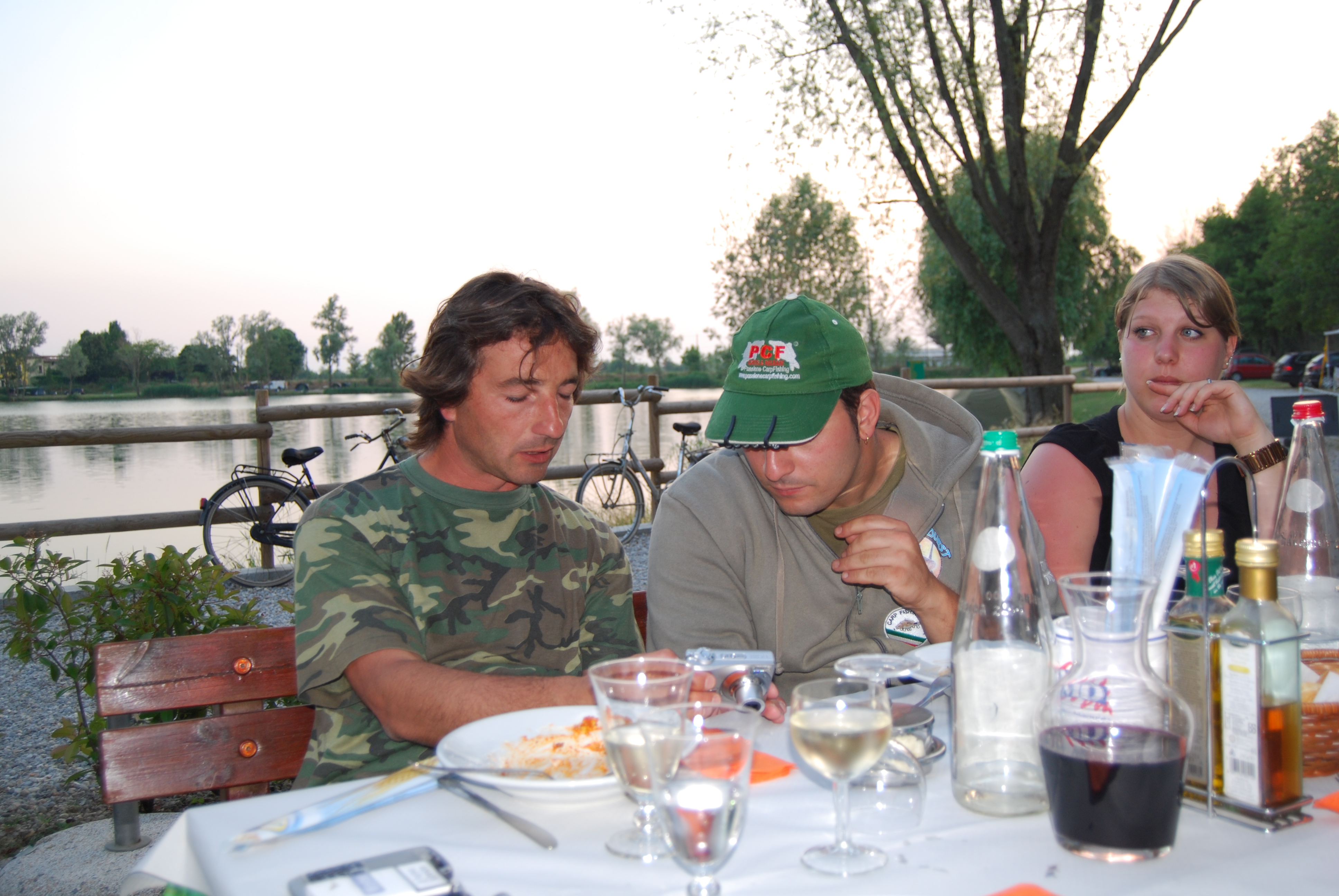 Mi fatto piacere vedere quatto48 (mio abituale compagno di pesca) che è passato a trovarci sabato mattina; ed alla sera ho smontato senza rimpiangere nulla, le carpe c'erano state ed ora si andava a cena.... ottimo Max ed Angela, non potevamo chiedere di meglio!