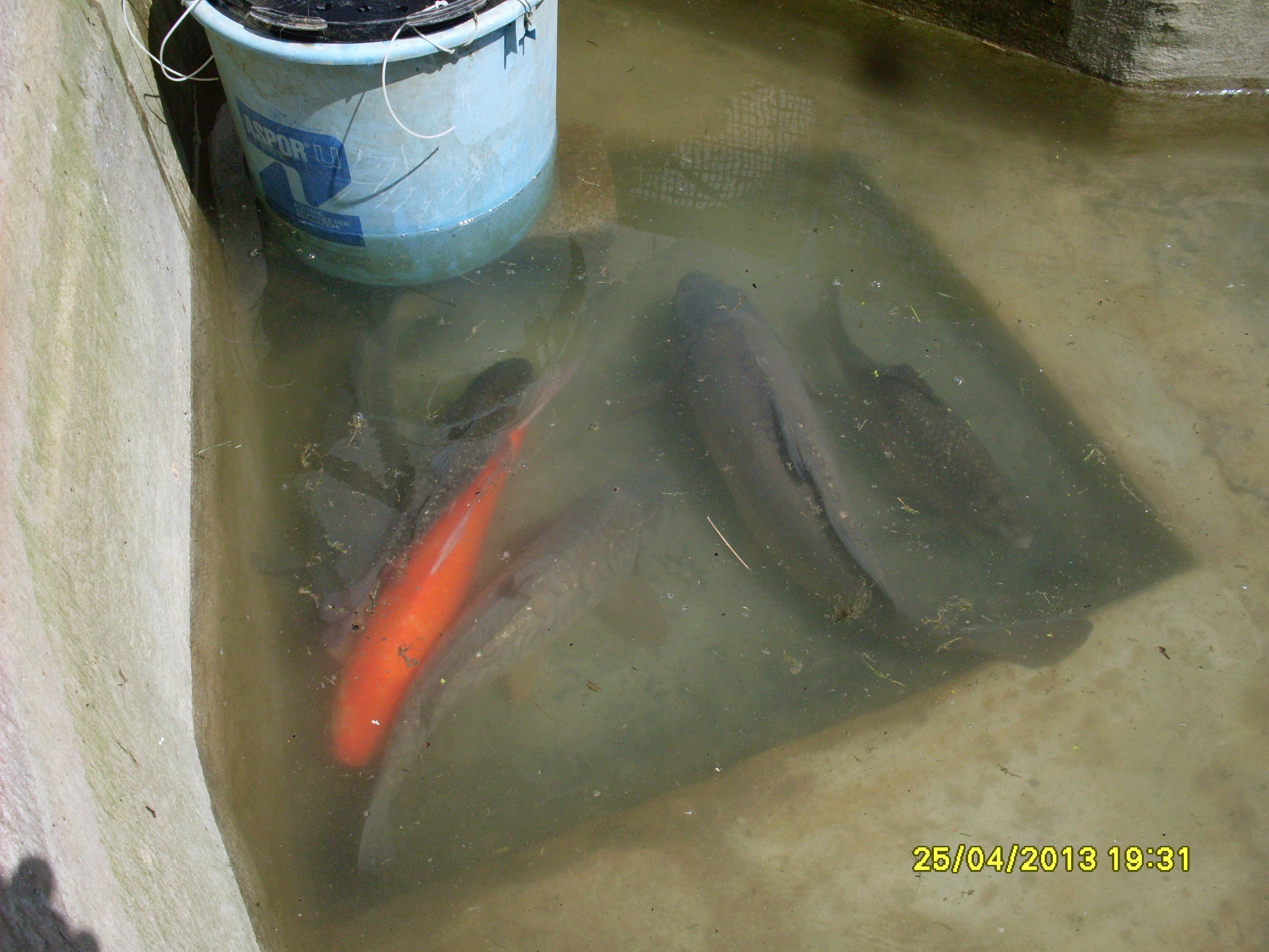 Cero , dovevono essere carassi (per Andrea), quando le abbiamo messe (anche le carpe ) erano 8-10cm. adesso sono 50-cm. per le koi e 70 per la carpa più grossa, e ci sono pure 2 anguille da circa 1kg che si sono subito intanate sotto al filtro (secchio)