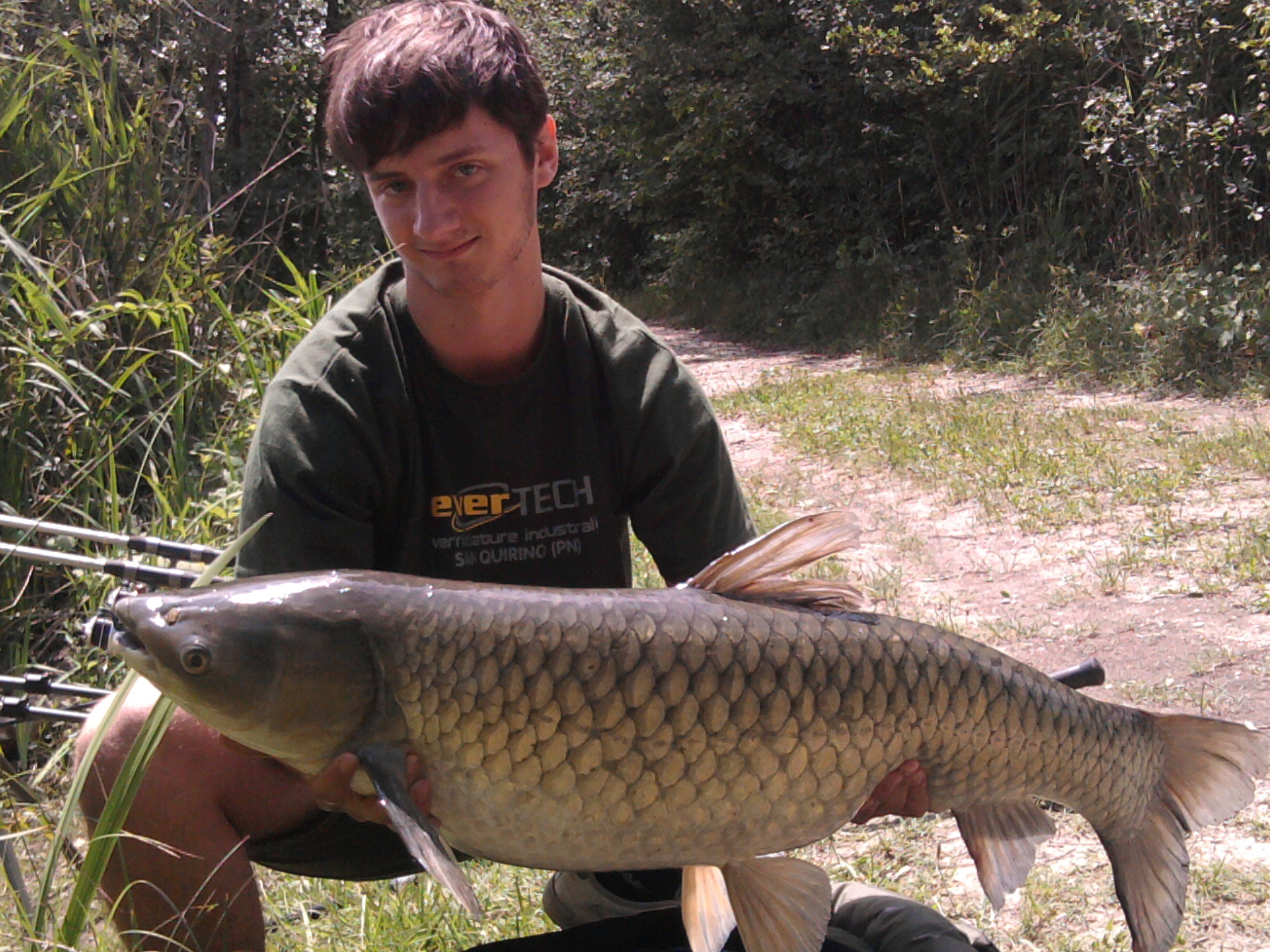 Dopo la pioggia e l'aria cosa può rovinare una giornata?? un albero...l'albero in acqua che avevo sotto riva dove a trovato rifugio il pesce...sembrava ormai andato...perso...incastrato la sotto...provo a sforzare l'uscita del pesce tenendo la canna alta..bassa ma niente...nn viene...decido di far predere il cucchiaione all'amico...con esso mi teneva giu le rame in parte alla postazione in modo che io potessi andare con la canna sopra l'albero...inizia a pompare il pesce verso la superficie rischiando qalcosina..ma.....si c'é l'abbiamo fatta é fuori dall'ostacolo.