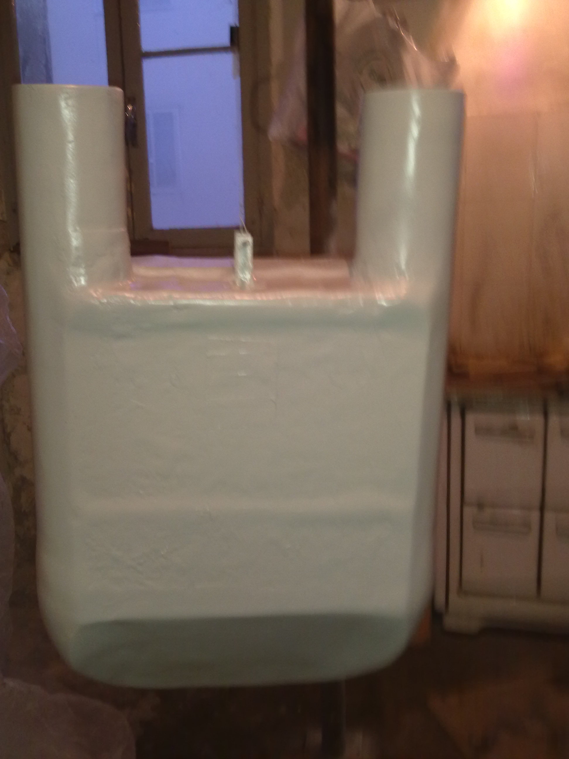 Per quanto riguarda la scocca ho usato dei tubi in pvc da 110 e tanta tanta vetroresina e lana di vetro presa sulle e-bay