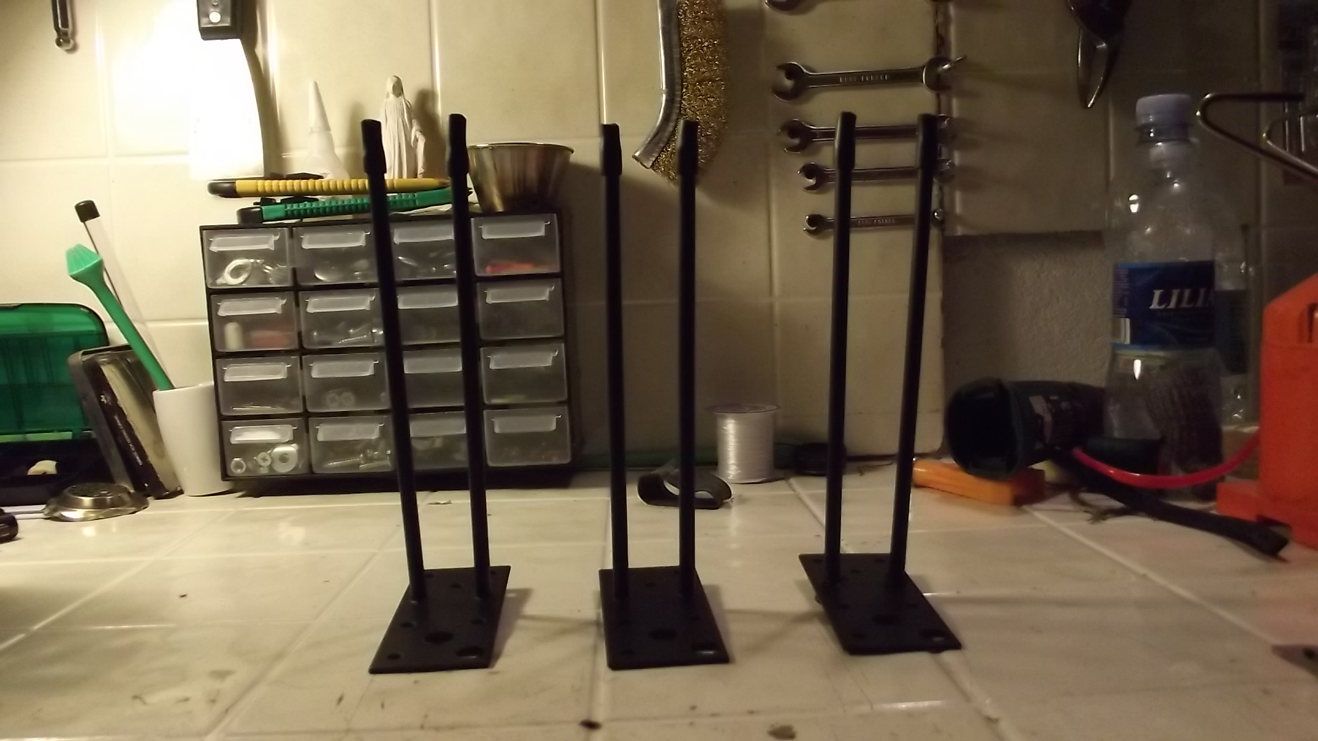 Raga vi elenco il materiale che ci vuole ,poi se volete piu`tardi vi dico i passaggi adesso sto lavorando,allora:normali chiodi non so la misura credo da 10 bo poi ve lo diro`con sicurezza (pacchetto 10 chiodi 2,50 euro),piastrine con buchi (0,80 cad.1),bomboletta vernice nero opaco(5 euro),colla tipo attach(3euro),punte per metallo da trapano(4 euro 5 punte) ,ovviamente il trapano credo che ognuno di noi c'e`l'abbia,per un totale di 17 euro ma io ne ho spesi 5 visto che avevo tutto tranne chiodi e piastrine