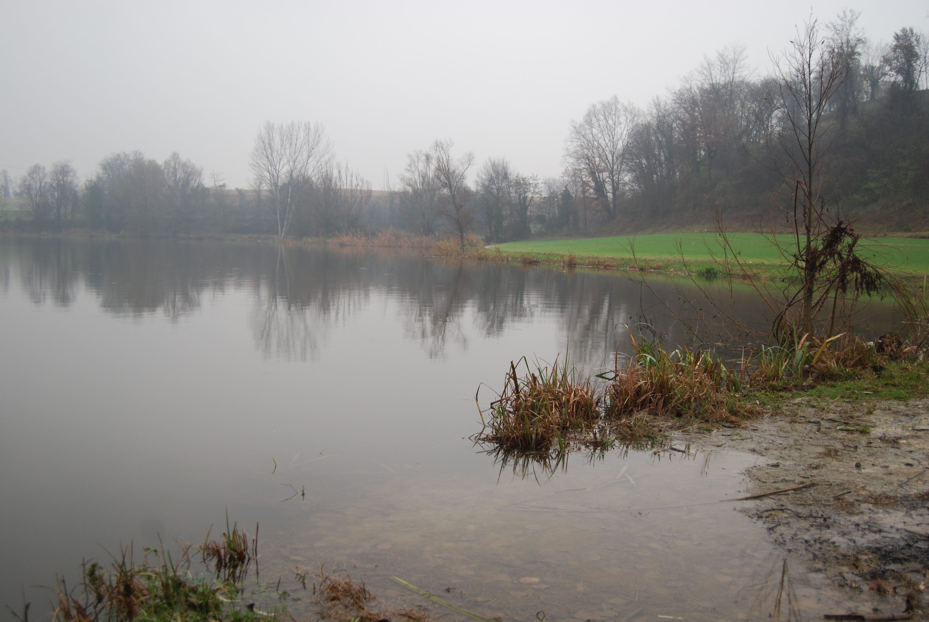 Nel lago entra da sud un immissario abbastanza copioso, almeno in questi giorni di pioggia. L'acqua è abbastanza torbida ed il colore dà l'idea di un fondo fangoso, anche se guardando bene vicino a riva ci sono delle pietre per cui il fondo potrebbe essere misto fango-ghiaia. Anche qui zero cartelli. La sponda subito oltre l'immissario è comodissima, piana, senza alberi per almeno 50 metri fino ad un canneto che si prolunga nell'acqua, i campi coltivati arrivano a un metro dall'acqua; qui ci stanno tranquilli 4 o 5 pods. La riva di fronte è tutta a canneto ma ho creduto di intravvedere un paio di postazioni (3 e 4). Ho passato un'oretta a misurare il fondo: si va dai 2,5 a ca. 20 metri fuori dall'immissario ai 3 in mezzo, ma la profondità cresce leggermente andando verso la sponda nord. Nel punto più profondo potrebbero esserci 4 metri o poco più. A 10 metri da riva il fondo va da poco più di 1,5 a ca. 2 spostandosi da sud a nord, poi fa un piccolo gradino. Non ho sentito ostacoli ma sondando senza amo è difficile avvertirli; nemmeno alghe ma data la stagione pare scontato.