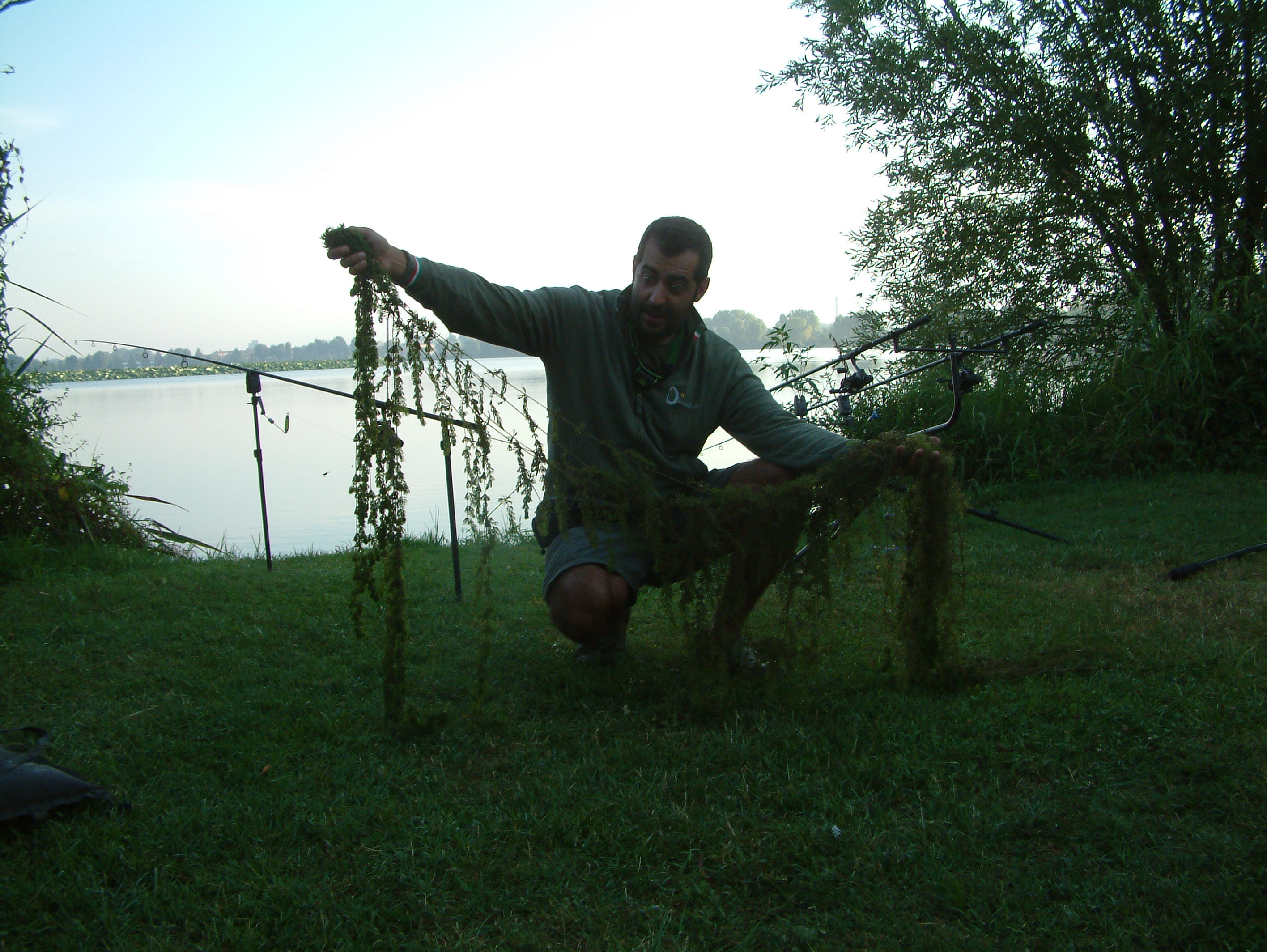 Giunti sul posto abbiamo dato il via ad una faticaccia tremenda, sudato come dei matti ma dopo 45 minuti era già tutto risolto, eravamo finalmente giunti alla posta con l'attrezzatura all'ombra di un salice piangente che avrebbe fatto da casa nei prossimi giorni ...