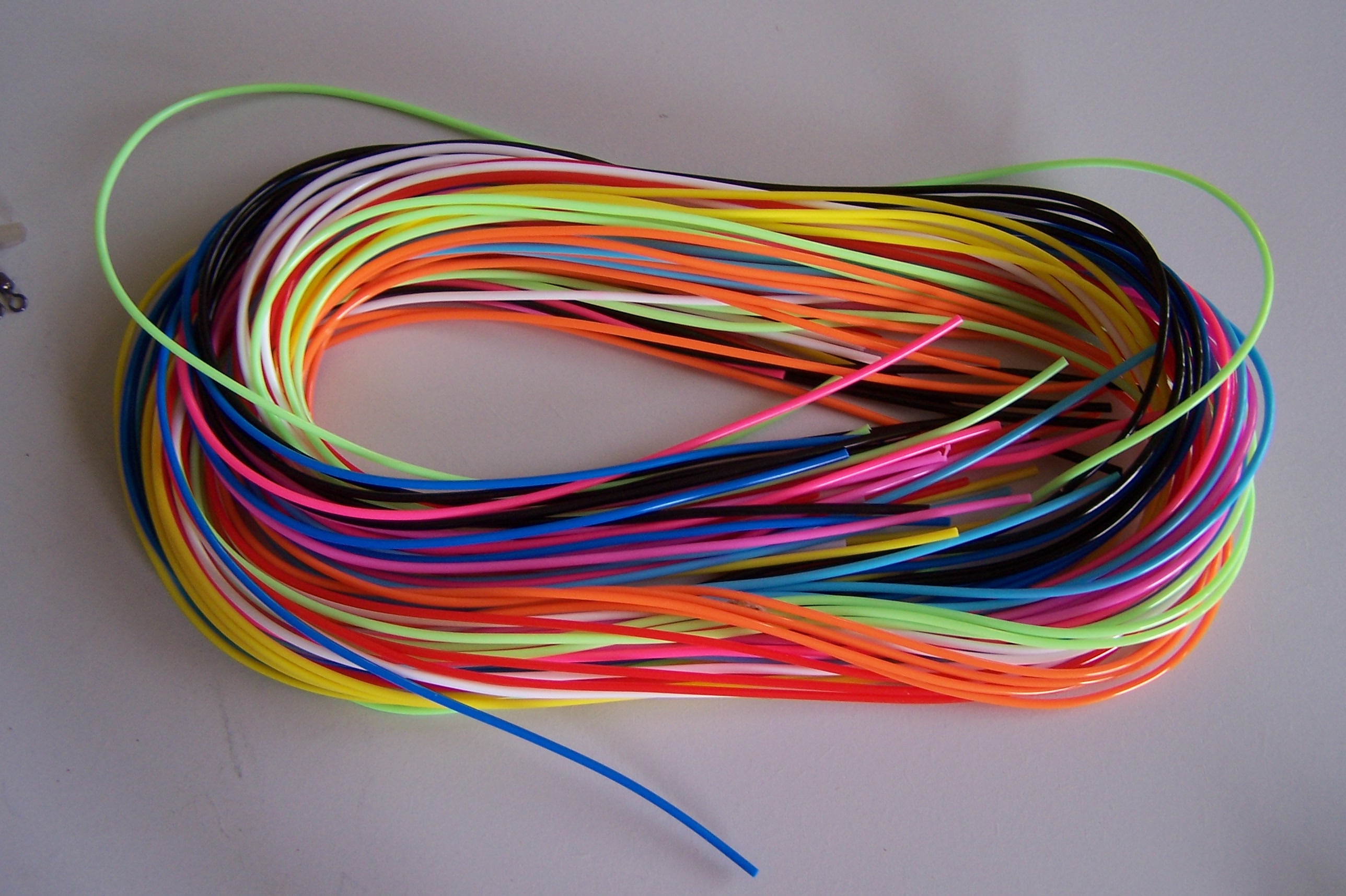 Allora quelle che vedi nelle foto sopra,le vendono già pronte,io le trovavo a 4 euro e te ne davano 4 +4 girelle(tubetto,conetto,clip,girella)ma poi mi sono ingegnato ed ho fatto di necessità virtù ed ho cominciato a costruirmele visto il gran risparmio che ho notato.Ho visto che con 15 euro me ne faccio quasi una 50 se non di più,come prima cosa vai in edicola e chiedi i braccialetti scooby doo,è un sacchetto che contiene 30-40 fili colorati lunghi 80 cm(che poi dividerai in 2 cioè 40cm circa ) di pvc del diametro ideale per i nostri scopi,ti prendi i conetti e le clip a parte ed il gioco è fatto.Se ti disturba il fatto che siano colorati li puoi colorare o con il pennarello indelebile,o con lo spray anti acqua e così faresti anche prima,basta stenderli su una tavola.