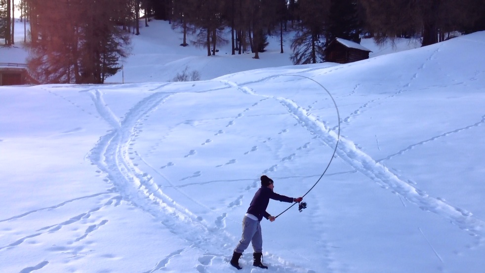 A vedere le foto si carica molto , nella prima foto sembra che si carichi solo la punta e li manico,, nella seconda da la netta impressione che si sia caricato solo la punta e li manico all'altezza del milinello,nella terza foto si vede il manico che si sta distendendo e il fuato e la punta sono ancora carichi, ci vorrebbe un'altra foto che mostrerebbe la chiusura del lancio, a vederla cosi fa un bell'effetto