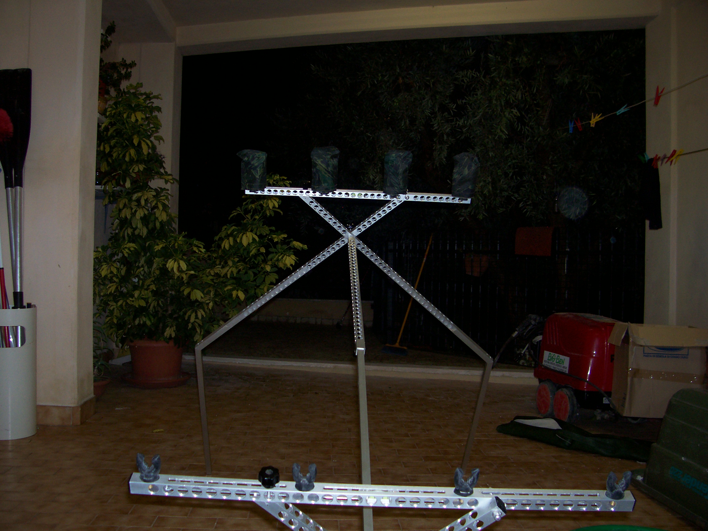 Questo pod è stato completamente costruito da un mio amico, è davvero un ottimo oggetto:molto leggero,stabilissimo,completamente in alluminio, estendibile e con le gambe allungabili è provvisto di prolunghe per poter proiettare le canne verso il celo!!Inoltre è davvero molto versatile e solido dopo anni ed anni di pesca si è rivelato a l'altezza di ogni situazione anche su terreni scomodi e sconnessi o pescando con la frizione dei mulinelli serrata.