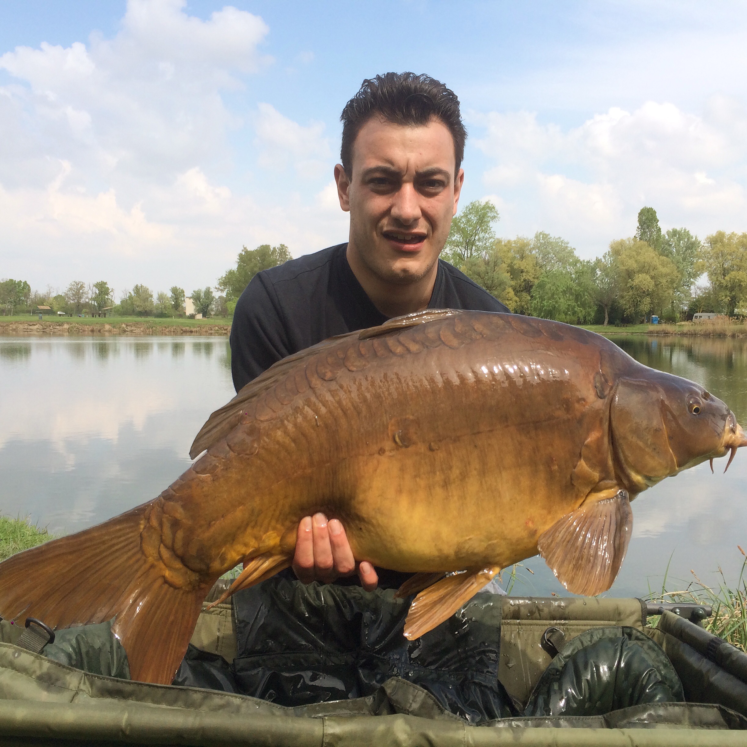 La prima partenza è avvenuta dopo un paio di ore sulla Citruz, una carpetta di modeste dimensioni ma assai appagante visto i cappotti accumulati fin ora durante l’inverno, boiles che prende non si cambia e quindi giù ancora nello stesso punto. La seconda partenza l’ho avuta mentre stavo finendo di pranzare, più fulminea e decisa della prima, lasciava intendere una taglia maggiore rispetto alla prima, e così è stato, una bella regina di poco più di 10kg attratta dalla Over Carp color giallo acceso. La terza ed ultima partenza l’ho avuta mentre smontavo il campo, d’istinto ho tergiversato a tirar su l’ultima canna e come per magia una bella specchi mi ha fatto visita sulla Citruz che già aveva contribuito alla mia causa, prima volta in cui riesco a fare due catture sulla stessa pallina, estasiato!!