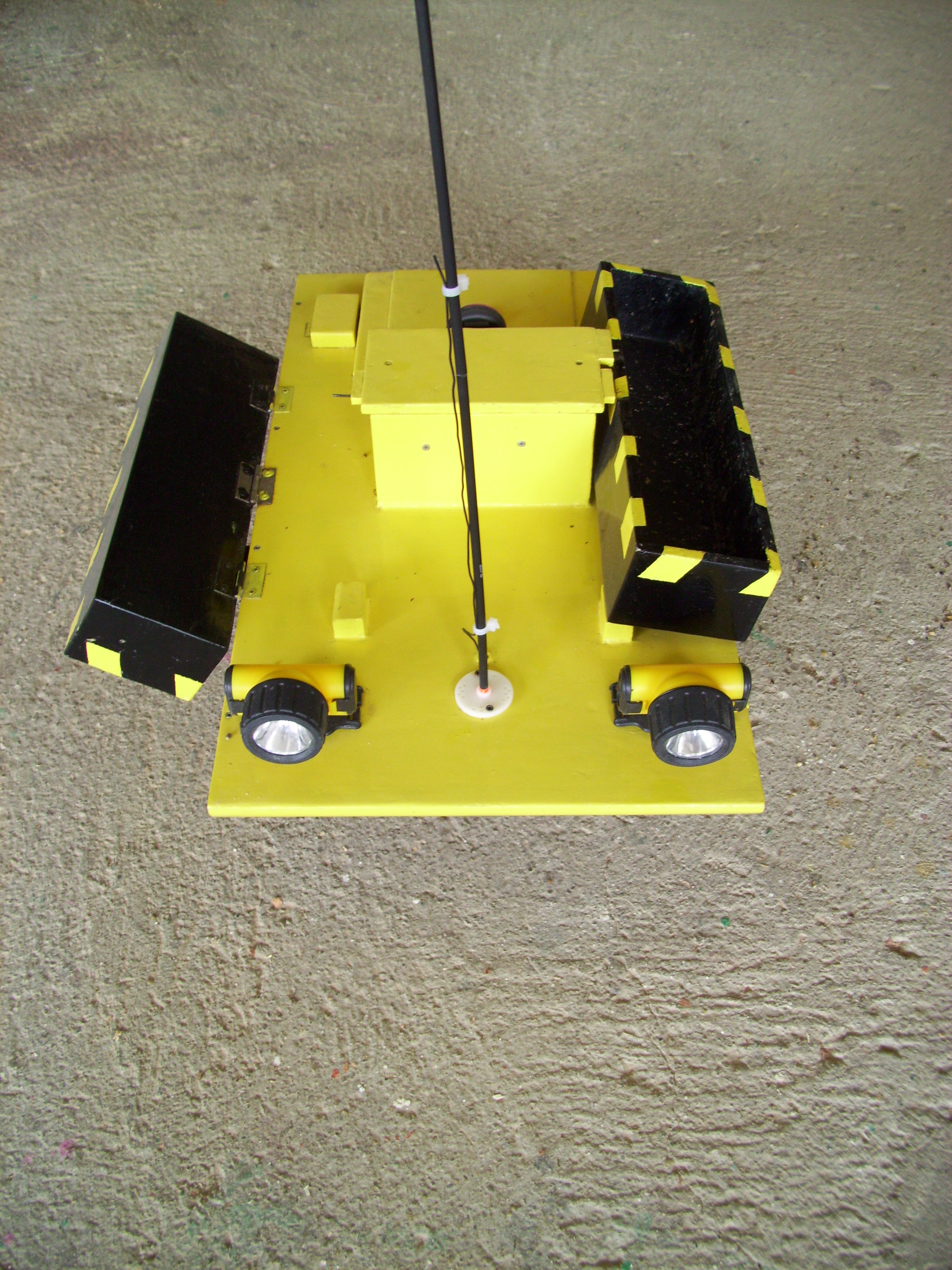 Il primo è un barchino con le vasche che si sganciano separatamente con una capacità di 1kg ogni vasca, ha un raggio d'azione di 1km e usufruisce di batterie da 6v 7,2A. é costruito interamente in legno e rivestito con 3 strati di vetroresina a stucco e verniciato con vernice a olio.