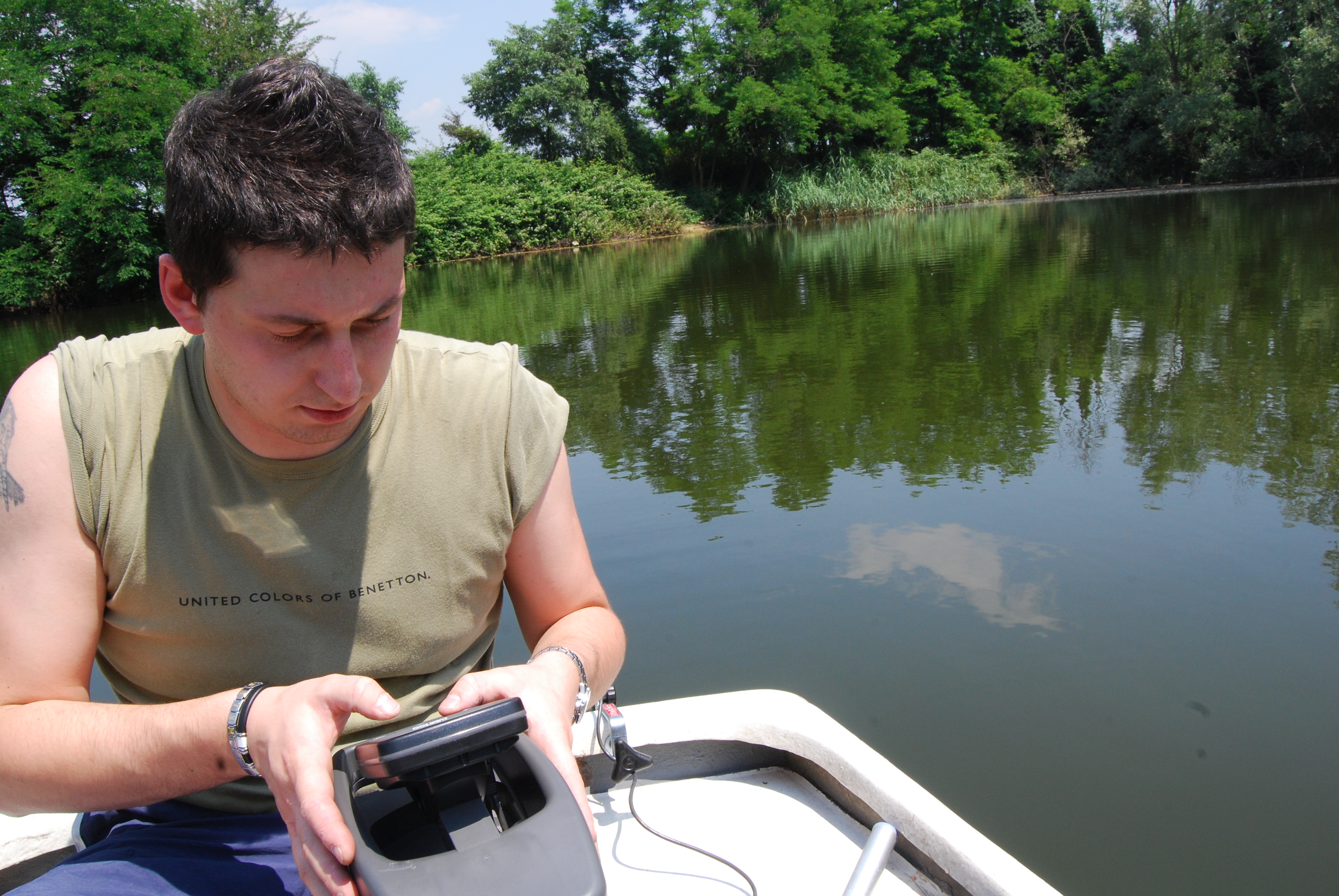 Dimenticavo una foto, qui c'è Nicola che pastura proprio sotto le frasche, vicinissimo a riva in un'isola d'ombra. Ci sono oltre 4 metri di fondo, impensabile arrivarci senza la barca