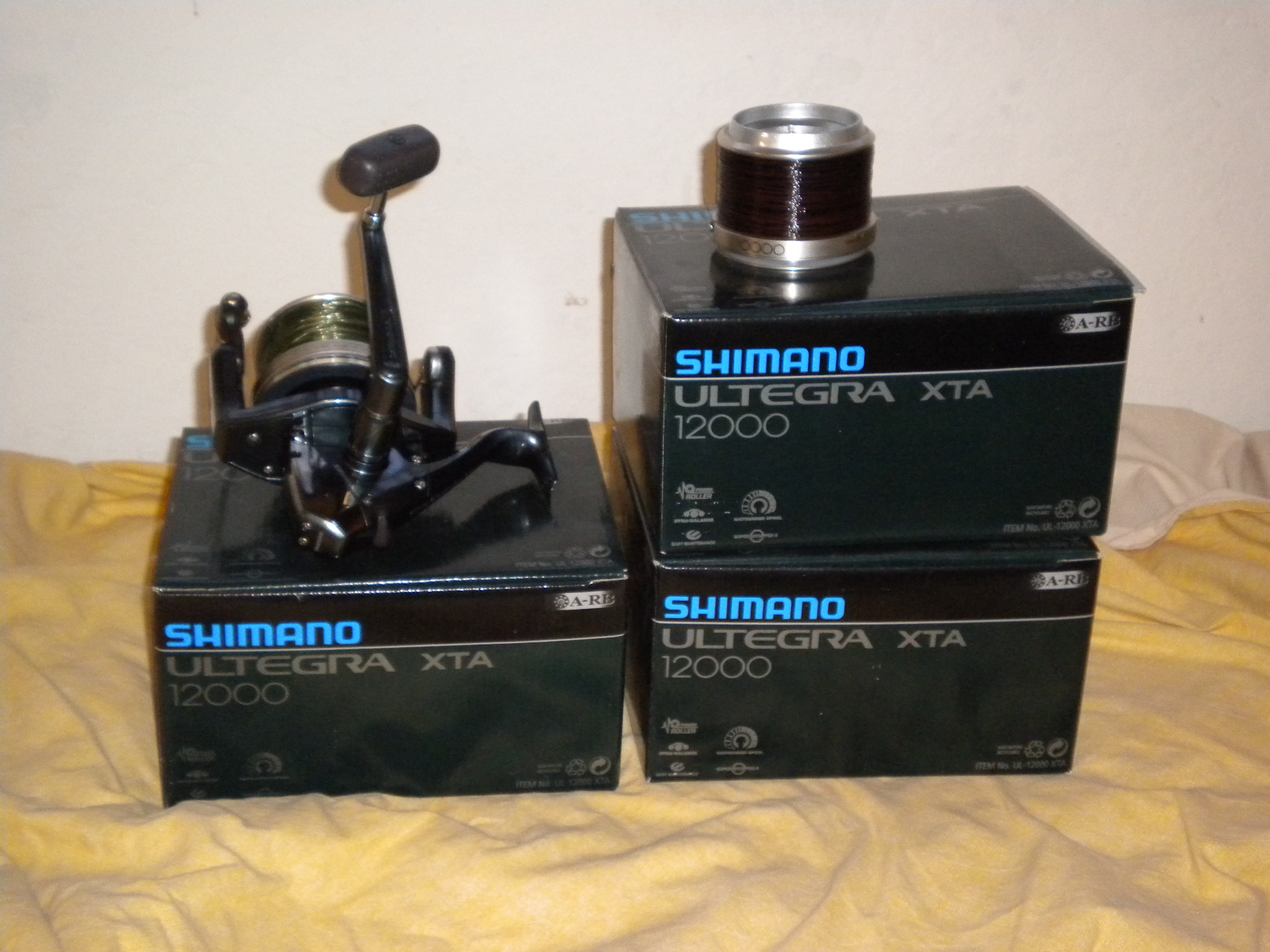 Ciao ragazzi ,come da titolo vendo tre mulinelli Shimano Ultegra XTA 12000 praticamente come nuovi (usati una decina di volte),in dotazione oltre alla bobina 12000 anche una 10000 caricata con filo 0.30 mai usato,sulle 120000 è caricato uno o.43 di Nash.I muli sono compresi anche della confezione originale con manuale d uso.Chiedo 270 euro comprese le spese di spedizione, disponibile anche per consegna di persona in zona Padova.PS:Vendo solo in blocco ,no perditempo grazie.