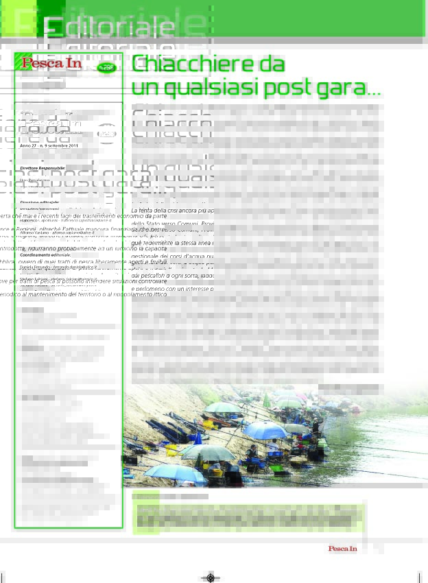 COPERTINA Pesca In - Settembre 2011 SOMMARIO Pesca In - Settembre 2011 EDITORIALE Pesca In - Settembre 2011