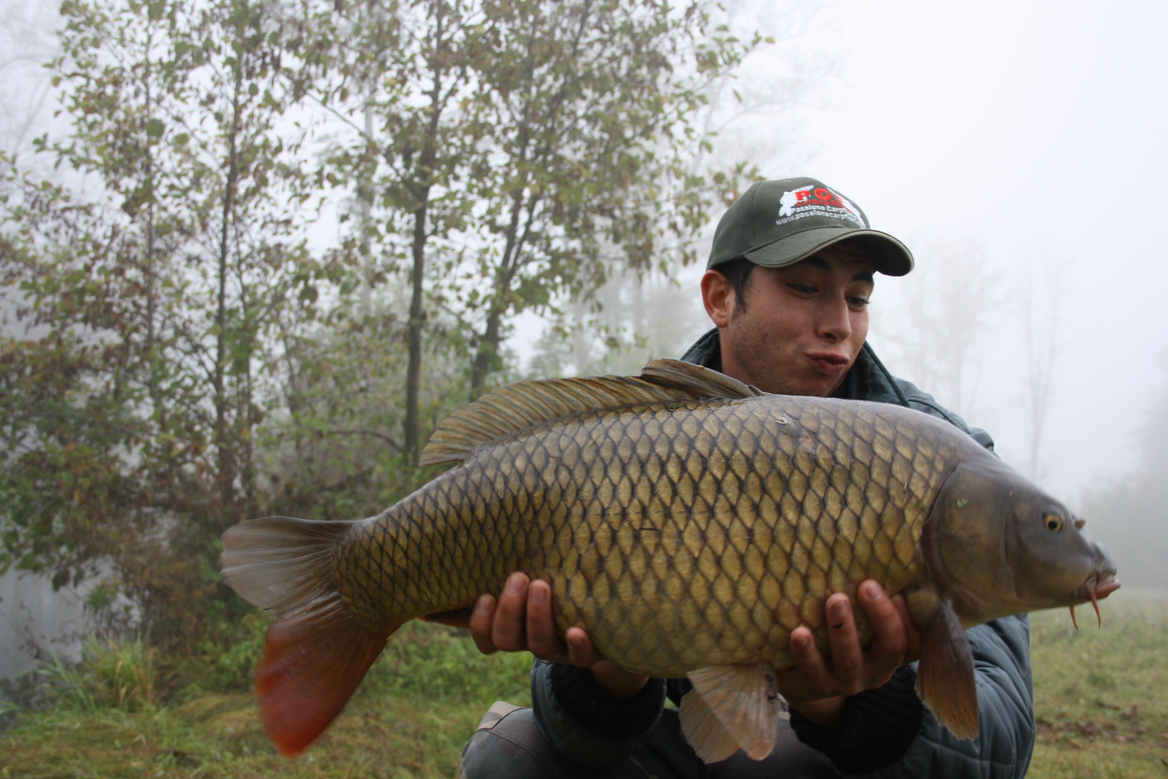 Nel frattempo la nebbia inizia a dissolversi cosi zambo e gian decido di lanciare le ultime due canne... Gian lancia e dopo 3 secondo partenza a razzo e porta una guadino un'altra bella carpa.